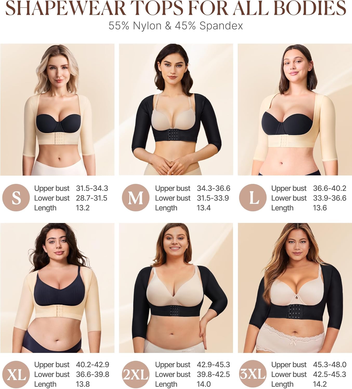 - WORK AS POSTURE CORRECTOR. This slimming shapewear for women firm compression of upper flabby arms, pulls shoulders back for great posture, improve your posture and humpback, makes you more and more confident.