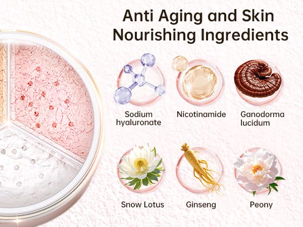 - ă3 COLOR EVEN SKIN TONEăPINK: adjust the red skin tone, modify red blood, red acne; YELLOW: helps minimize the appearance of pores, fine lines, and wrinkles.; WHITE: Powerful oil-control powder for a fresh, non-greasy finish. Use three colors together to achieve even skin tone and create a perfect basic makeup.