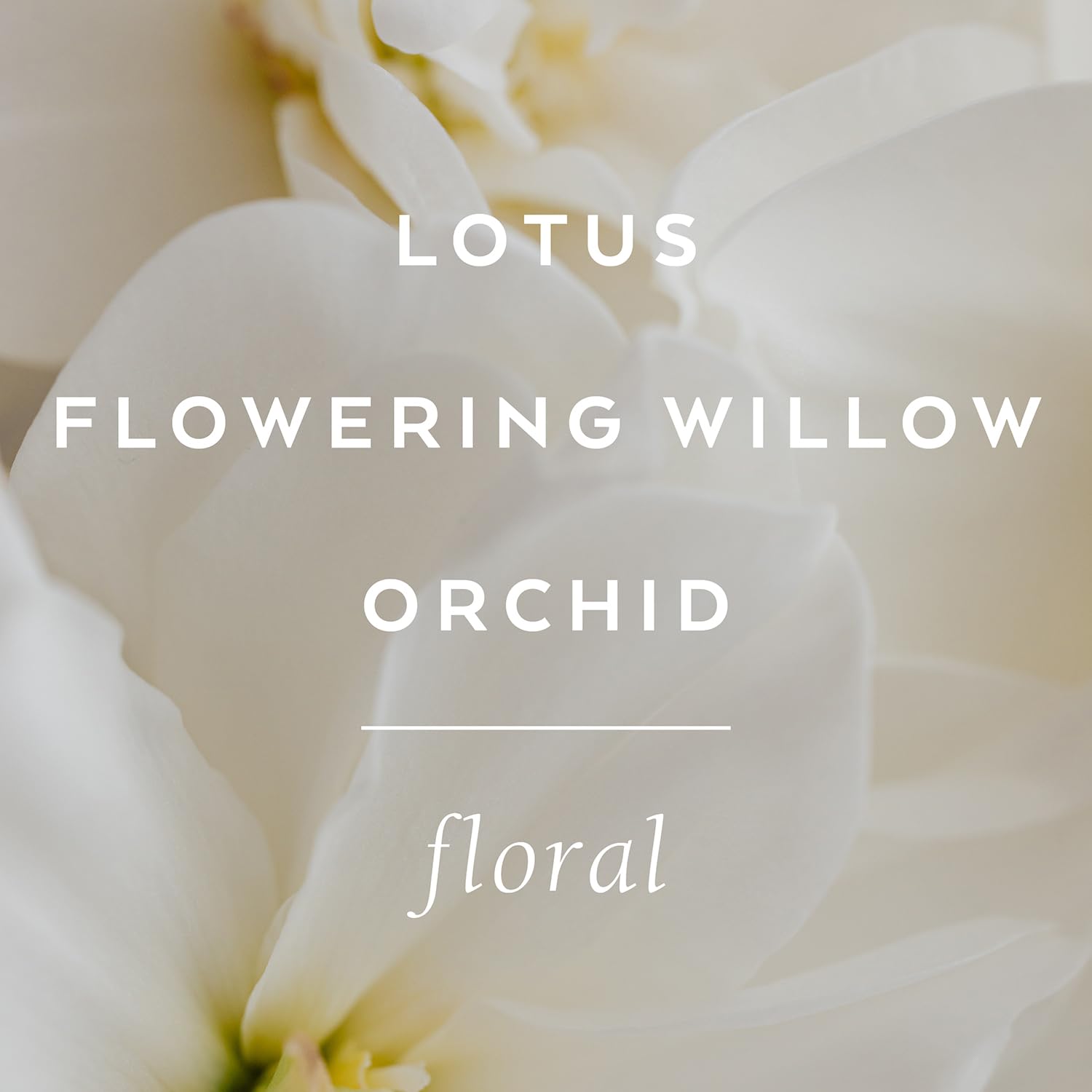 - Perfumed with Flowering Willow & Lotus in a delicate breeze of Rice Flower, Coconut Milk and dew drop notes of Mandarin and Jasmine petals
