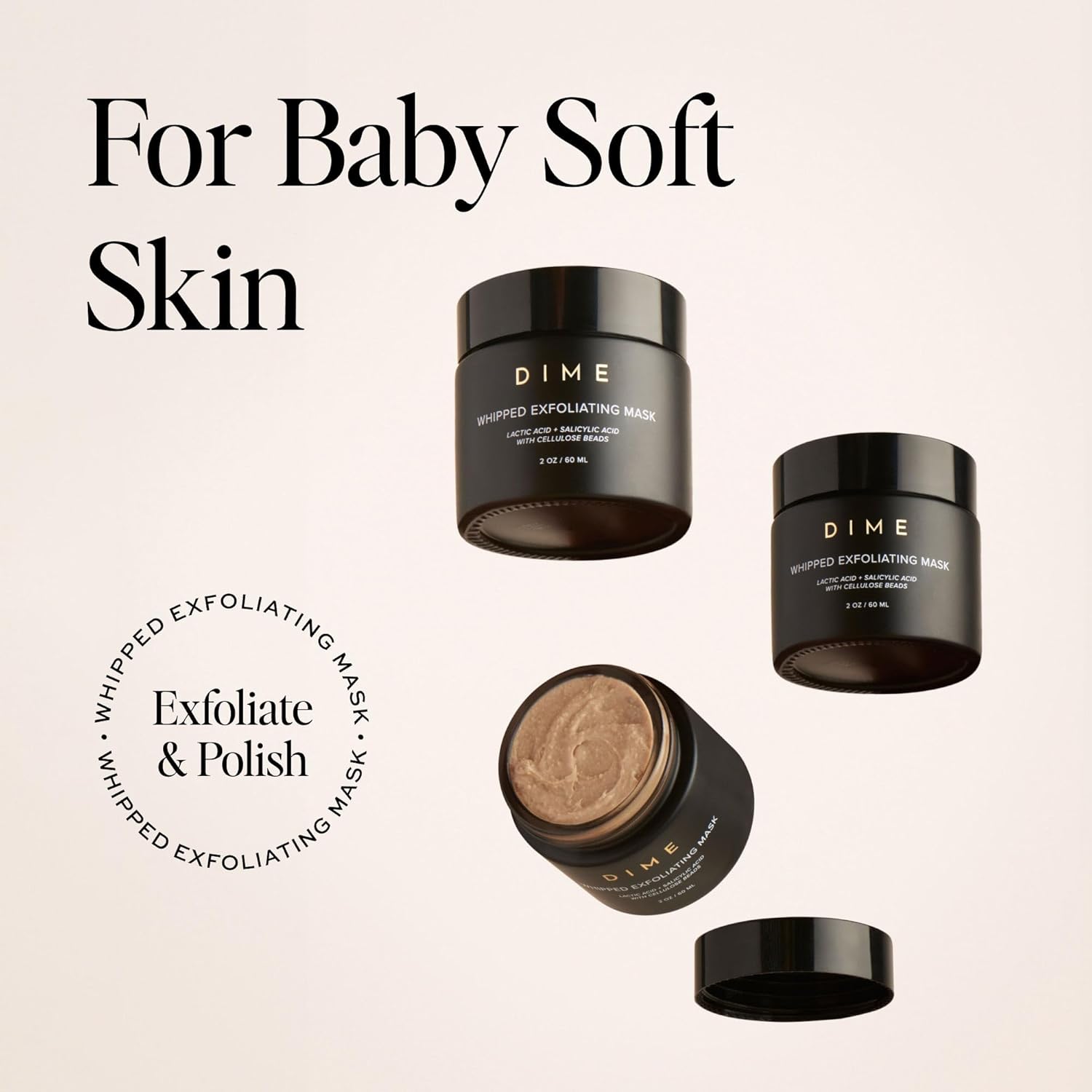 DIME Beauty Whipped Exfoliating Mask, Face Scrub and Cleanser, Lactic Acid and Salicylic Acid Scrub, 2 oz / 60 ml