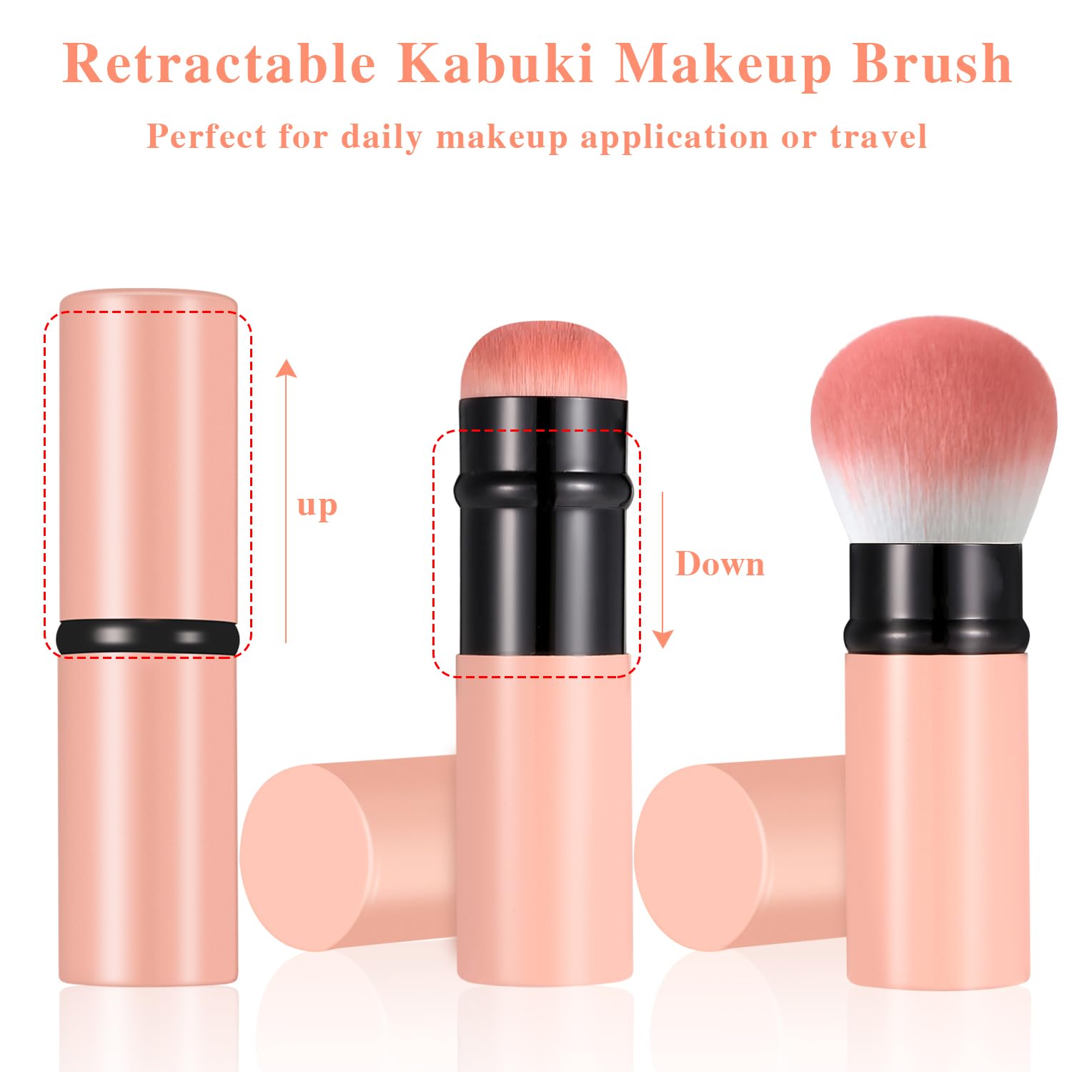 - ăPerfect for On The Goă With retractable compact design , this makeup brush is portable for daily makeup application or travel, it's the ideal size to tuck into a travel bag or keep in your purse, easy to carry, suitable for professional use, home use , travel around or even to work.