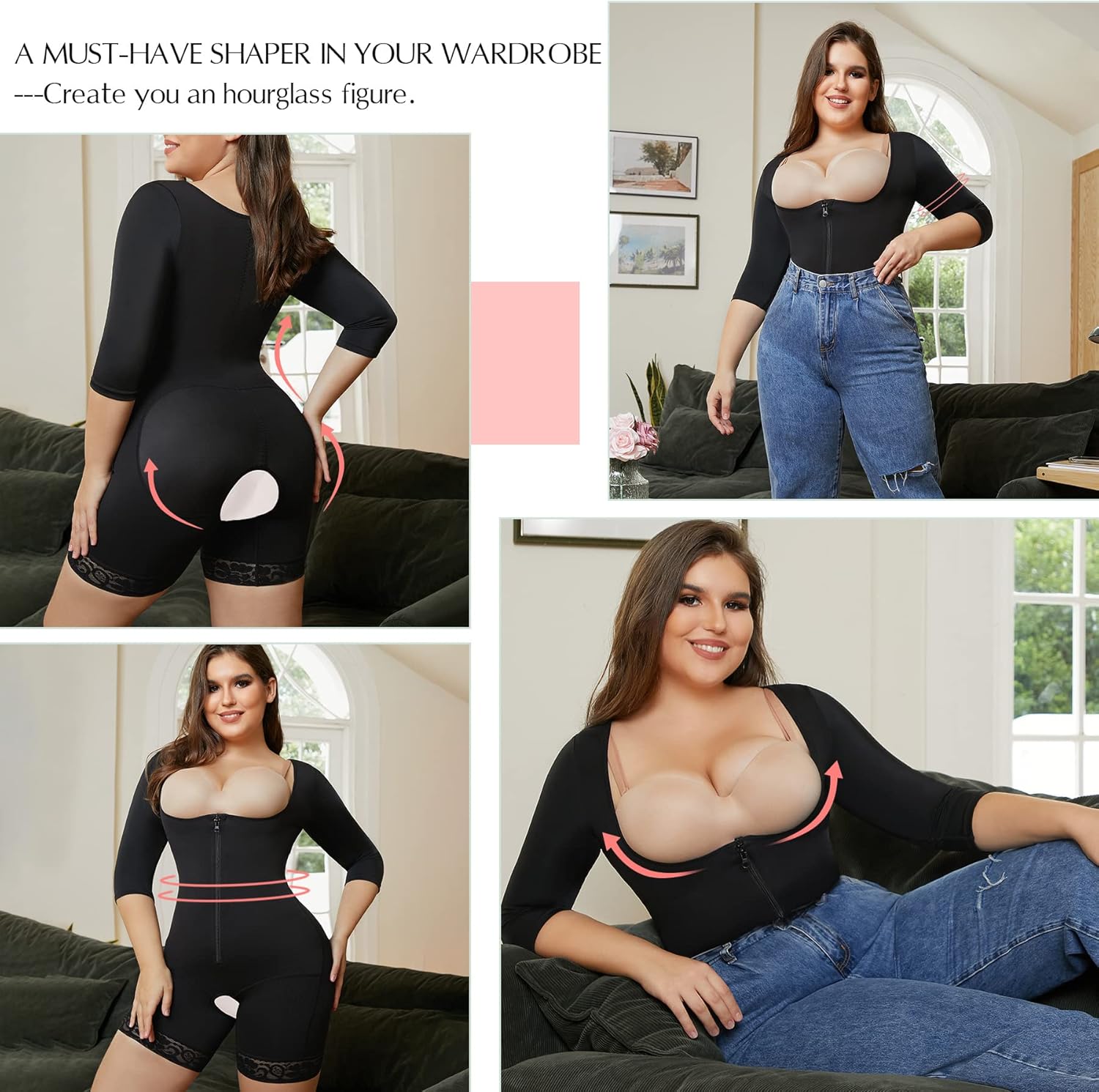 - UPPER ARM SHAPER AND OPENED-BUST BODYSUIT: Special U-Shape design, the open bust shapewear bodysuit for women will prevent breast sagging, makes your chest more erect and attractive. Different from other body slimming bodysuit, our shapewear for women tummy control plus with upper arm shaper sleeves, say goodbye to your slack fat in the arms.