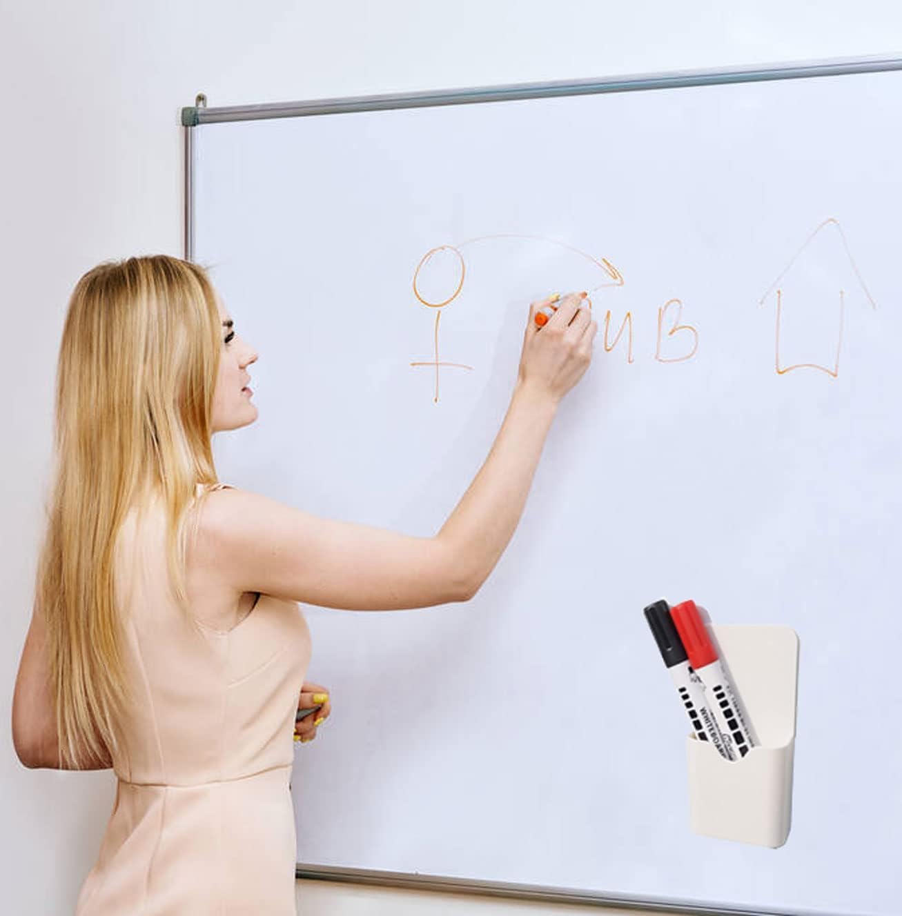 - Package and Size: 2 PCS magnetic marker holders, size of 4.72'' × 2.16'' × 1.1'' (12cm × 5.5cm × 2.8cm). (Note: Only holder. Pen, correction paper, and Scissors are NOT included in the package.)
