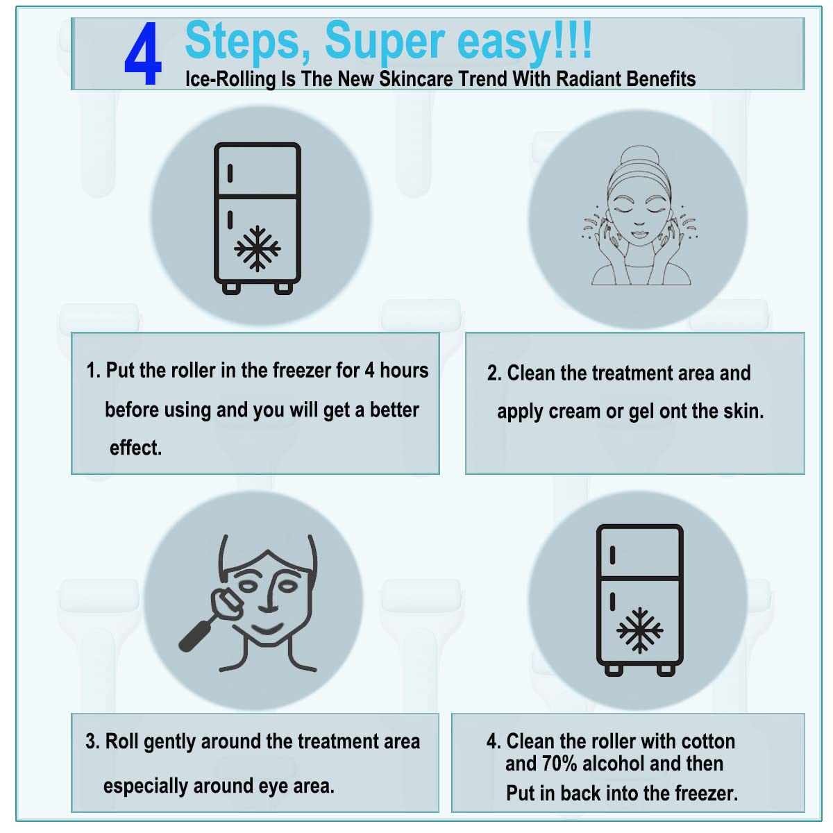 - ❄️Enhance Skincare Routine: Use the ice roller while applying your favorite mask to shrink pores, calm skin, and promote deeper product absorption.