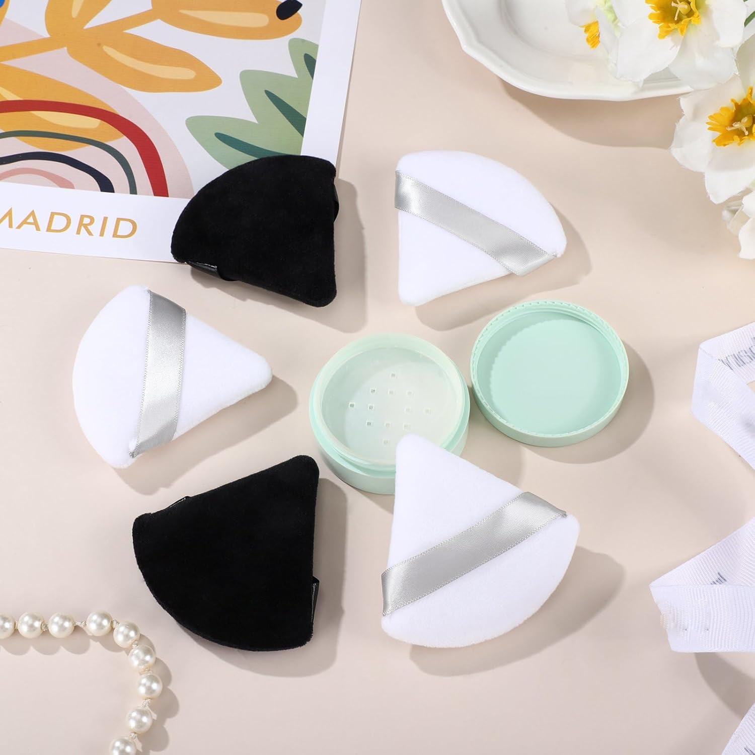 Suclain 48 Pcs Velour Triangle Powder Puff Soft Velour Makeup Puff for Face Powder Makeup Triangle Sponges for Wet and Dry Cosmetic Foundation Loose Mineral Body Makeup Tool(Black, White)