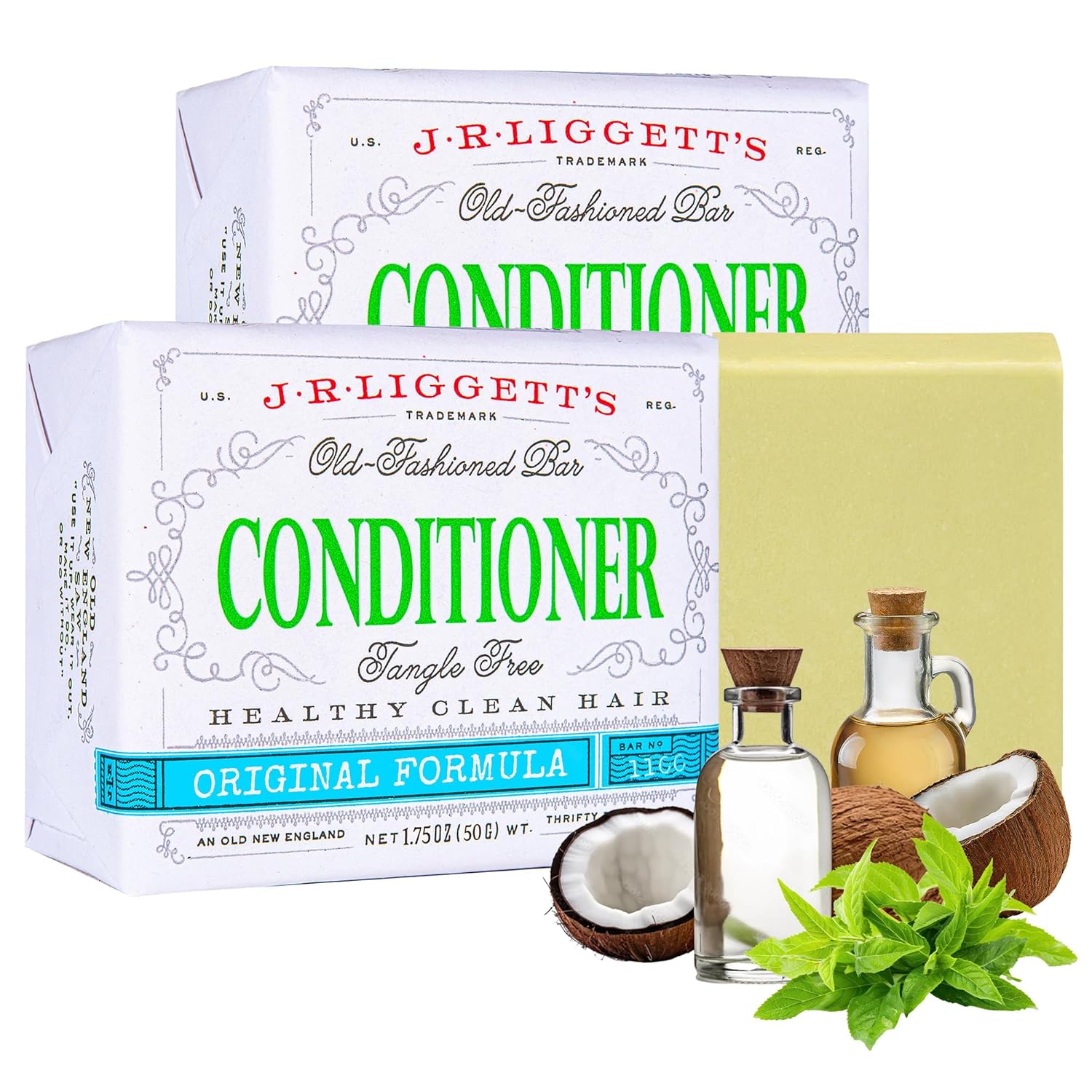 J·R·LIGGETT'S Conditioner Bar - Original Formula, All Natural Hair Conditioner with Coconut Oil & Cocoa Butter - Sulfate Free, Gmo Free, Plant-Based Ingredients for Soft & Smooth Hair, 1.75oz - 2 Pack