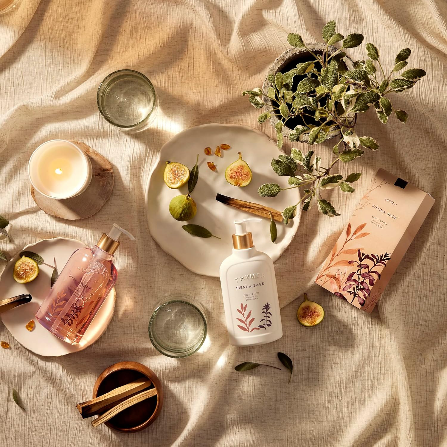 - Sienna Sage Fragrance: A warm fragrance that inspires moments of comfort and self-care. Our Sienna Sage luxury fragrance products are scented with notes of warm palo santo wood, soft amber, and clary sage that effortlessly blend with the soothing aroma of creamy benzoin resin and green fig.