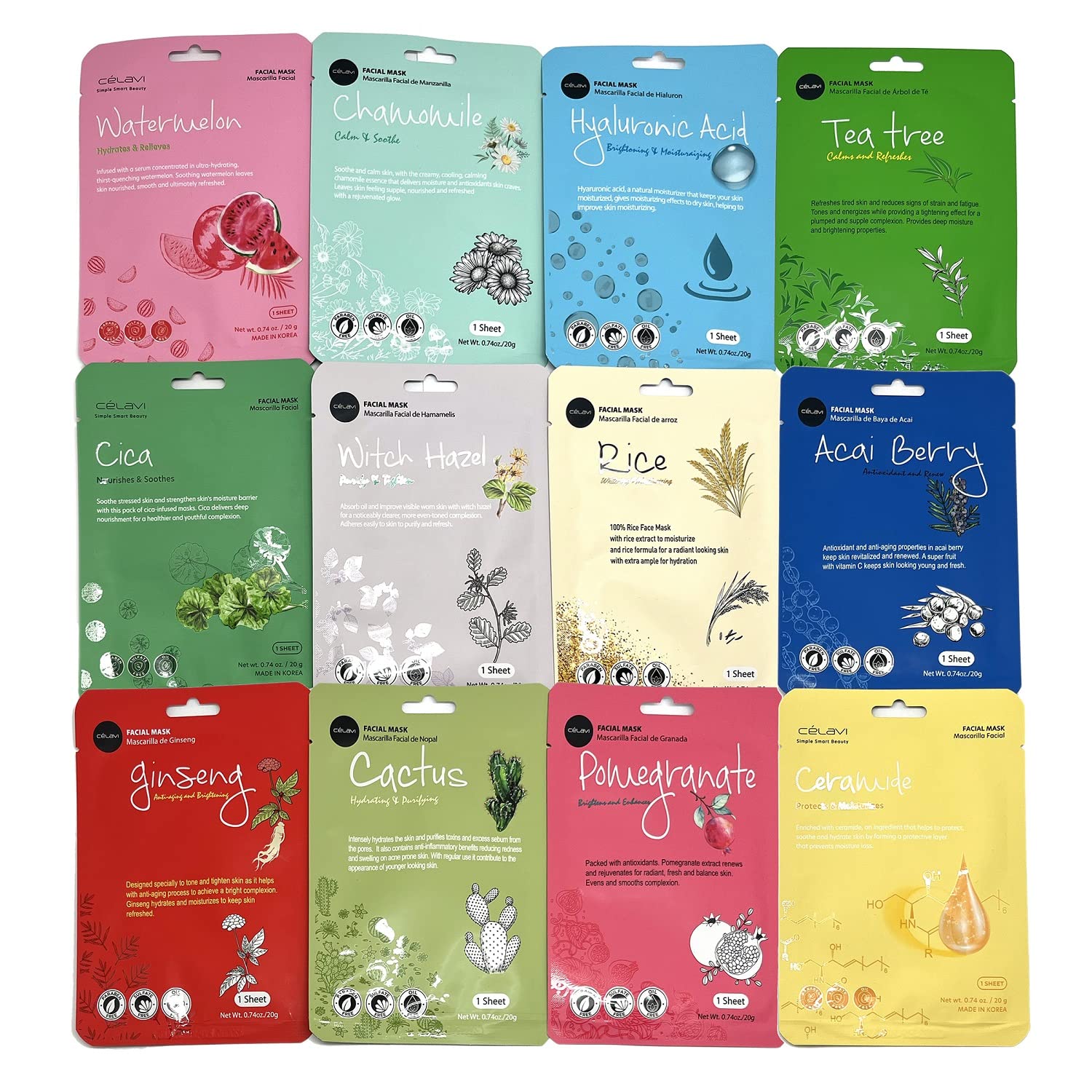Celavi K-Beauty Skincare Essence Facial Face Mask Korea Skin Care Moisturizing C Set 36 Pack