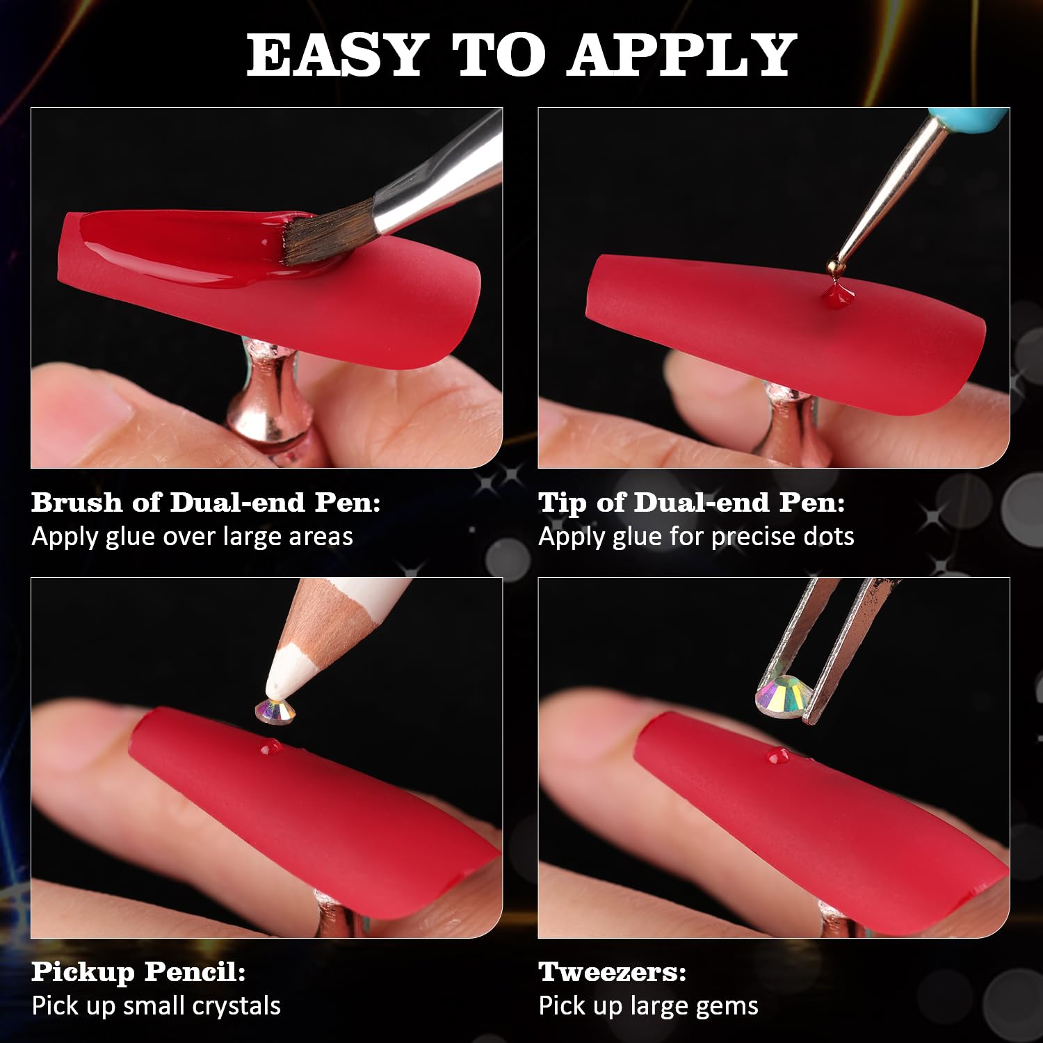 - 💎MULTIFUNCTIONAL TOOLS: The wide-head brush end of the dual-end dotting tool makes it easy to apply a large amount of your nail polish to the nail surface at once, while the other mini dotting end is great for detailed drawing. Picker pen can help you handily pick up small nail stones, while tweezer is a better choice for big beads. The flatback gems are not self-adhesive and glue-needed. (glue is not included.)