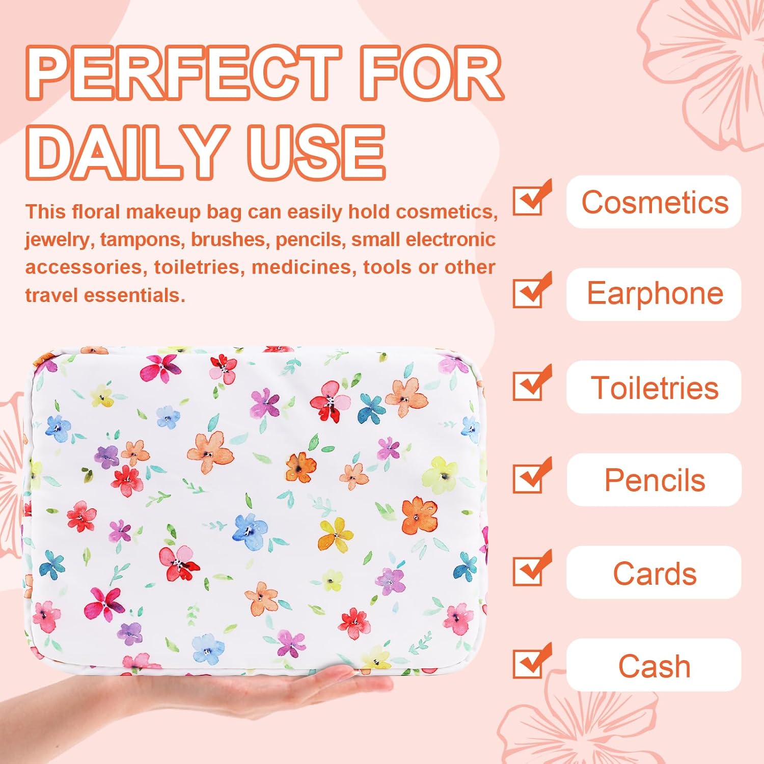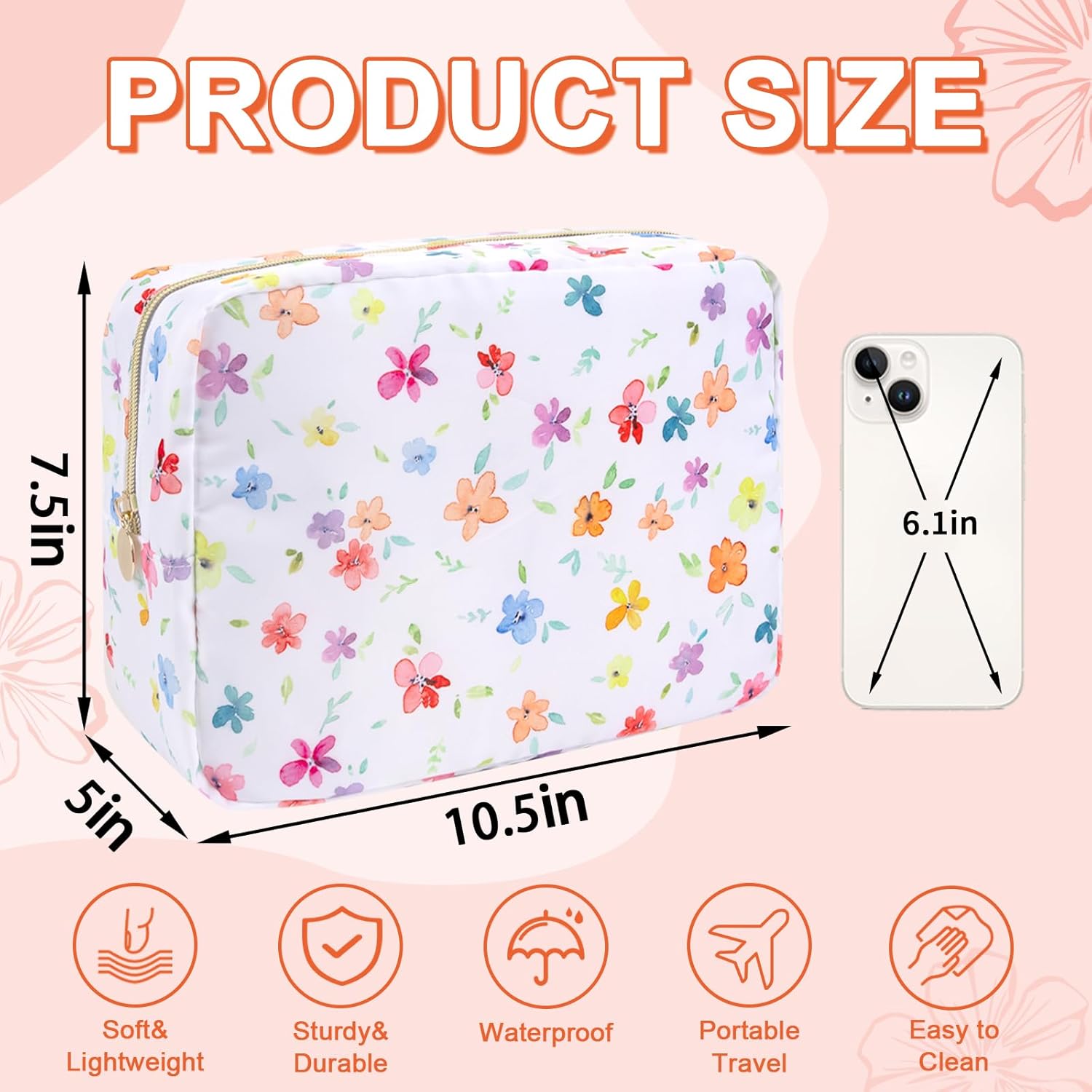 - 【Superior Quality】The floral makeup bag is made of lightweight and durable high quality nylon. It is waterproof and easy to clean, helping to protect your cosmetics and toiletries from water spill accidents.