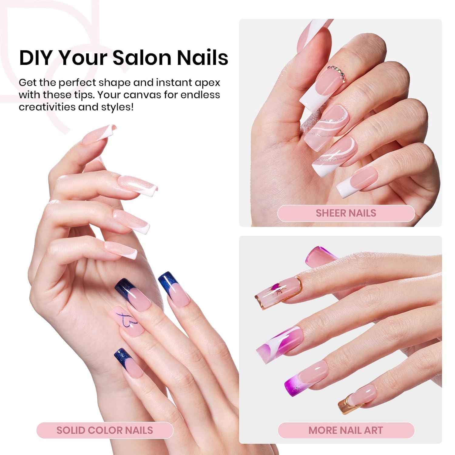 - Hands-Free Solid Nail Glue Gel:The solid UV nail glue comes in a mess-free squeeze tube and holds tips in place without needing pressure while curing. Great for beginners! Also perfect for applying rhinestones, charms, or 3D nail art with ease.