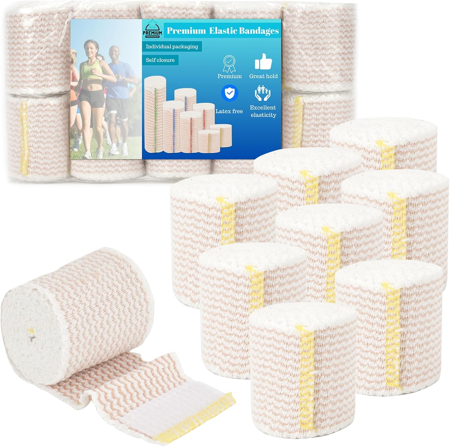 - Sufficient quantity,Individually Packed: 10 rolls of 2-inch wide compression bandages for your daily use and replacement needs,Each 6 in elastic bandage is individually packed for hygiene and convenience. The packaging ensures that the bandages remain clean and ready to use whenever you need them.