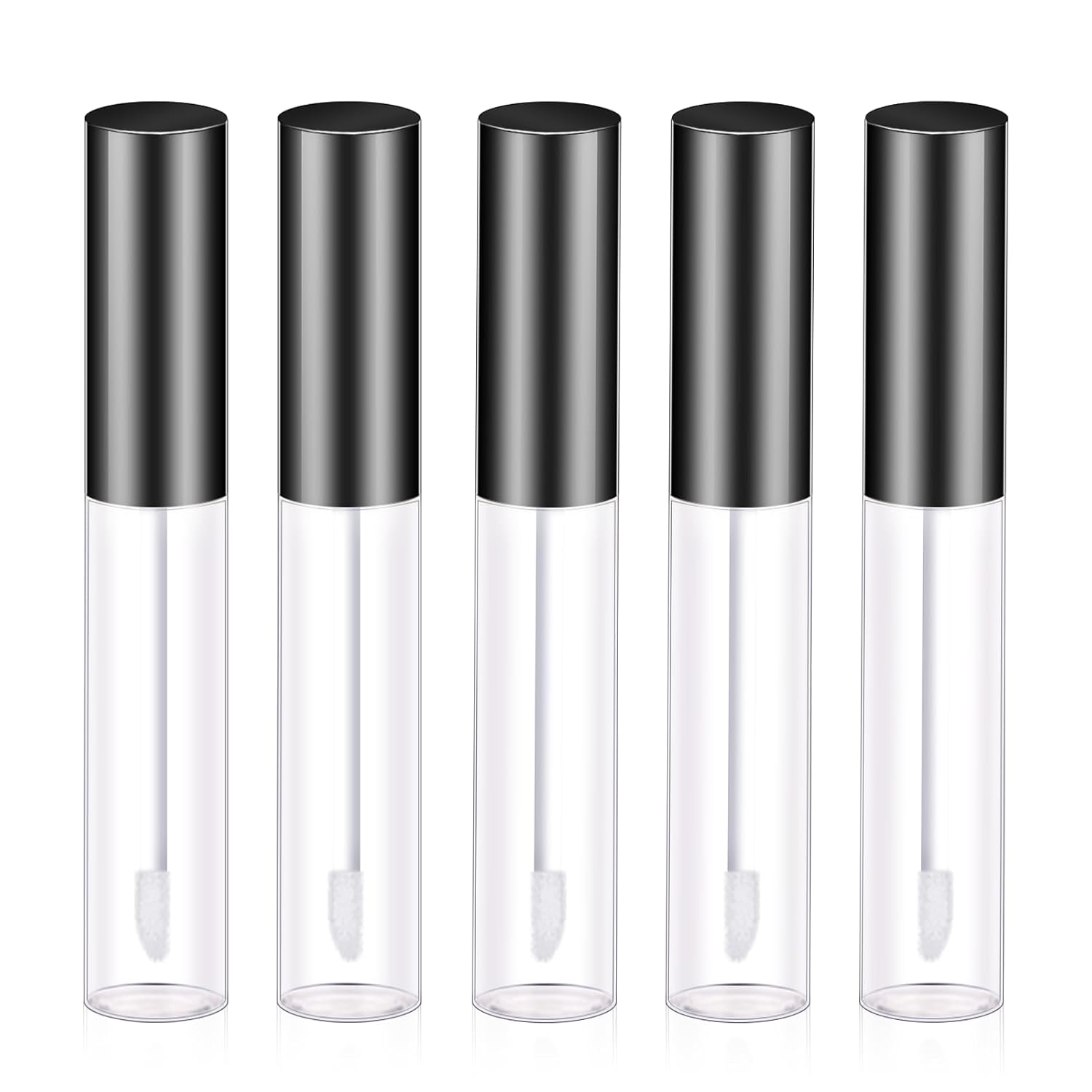 Molain 5PCS Empty Lip Gloss Tubes, 10ml Refillable Cosmetic Containers Bottles Lip Balm Bottles with Wand Concealer for Lipstick Samples, Lip Balms(Black tube cap)