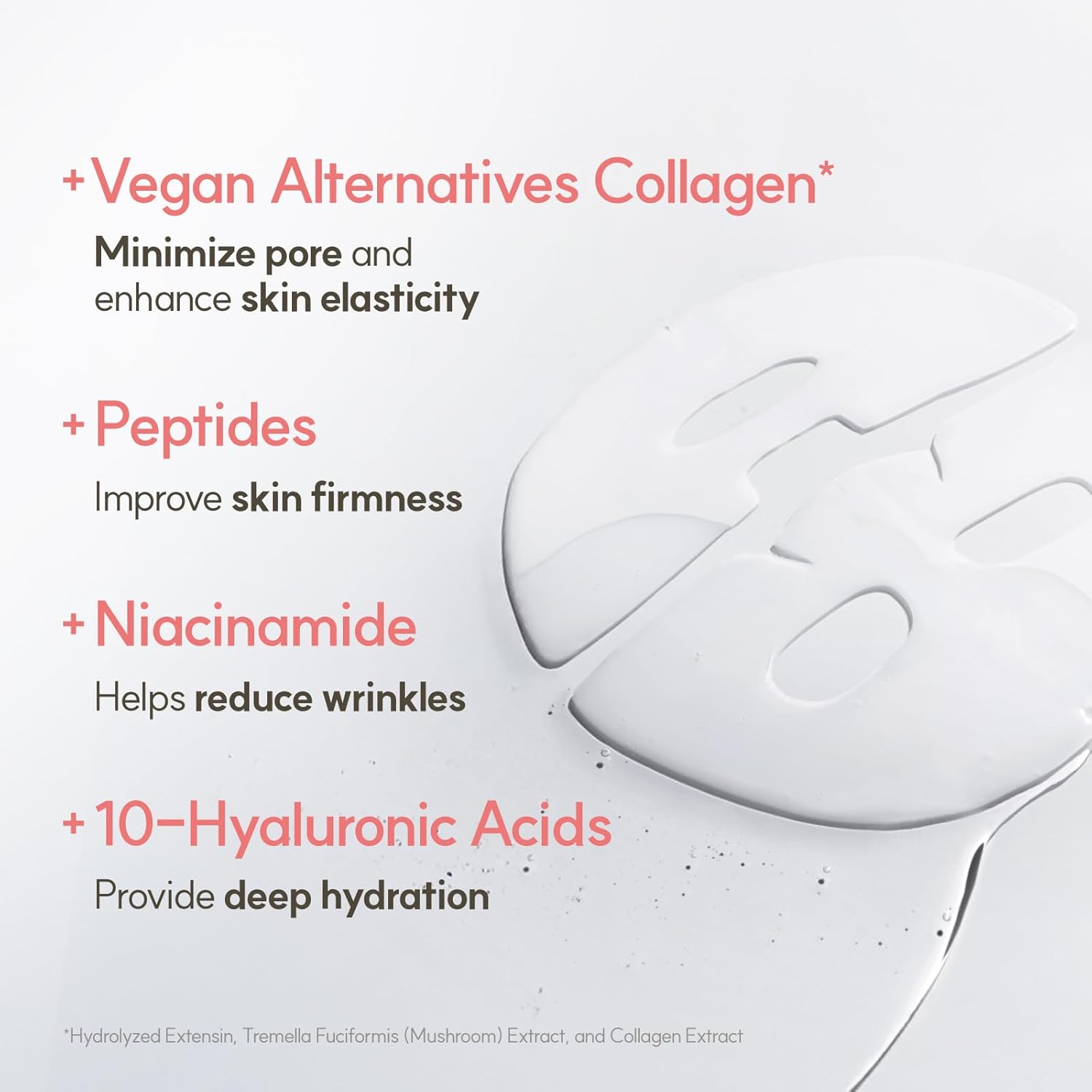 - Product Benefits : Plant-derived collagen improves elasticity and minimizes the look of fine lines and wrinkles for visibly firmer, younger-looking skin. Flexible hydrogel mask transforms and becomes translucent as your skin absorbs the active ingredients. Non-comedogenic tested. Plant-derived collagen improves elasticity and minimizes the look of fine lines and wrinkles for visibly firmer, younger-looking skin. Flexible hydrogel mask transforms and becomes translucent as your skin absorbs the active i… See more