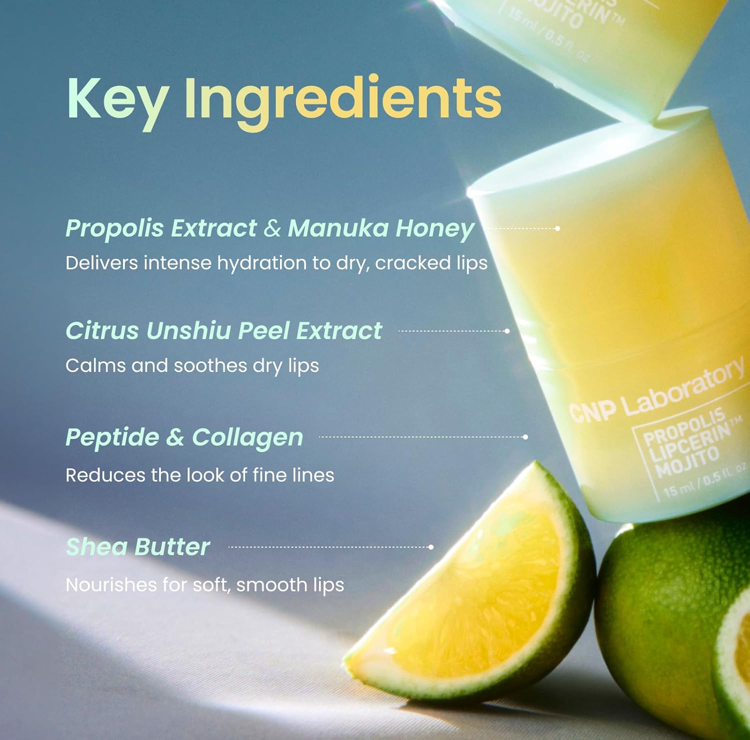 - [PROPOLIS LIPCERIN] Easy like lip mask, nourishing like lip mask all at once! CNP Propolis Lipcerin keeps your lips moisturized for 12 hours to keep them alive.
