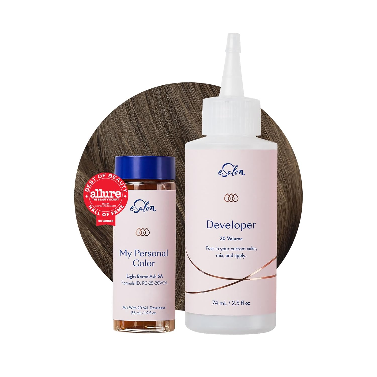 eSalon Permanent Hair Color & Hair Dye Complete Kit - Personal Colorist Kit for Up To 100% Gray Coverage for All Hair Types - Professional-Grade Ammonia-Free Hair Dye (Light Brown Ash 6A)