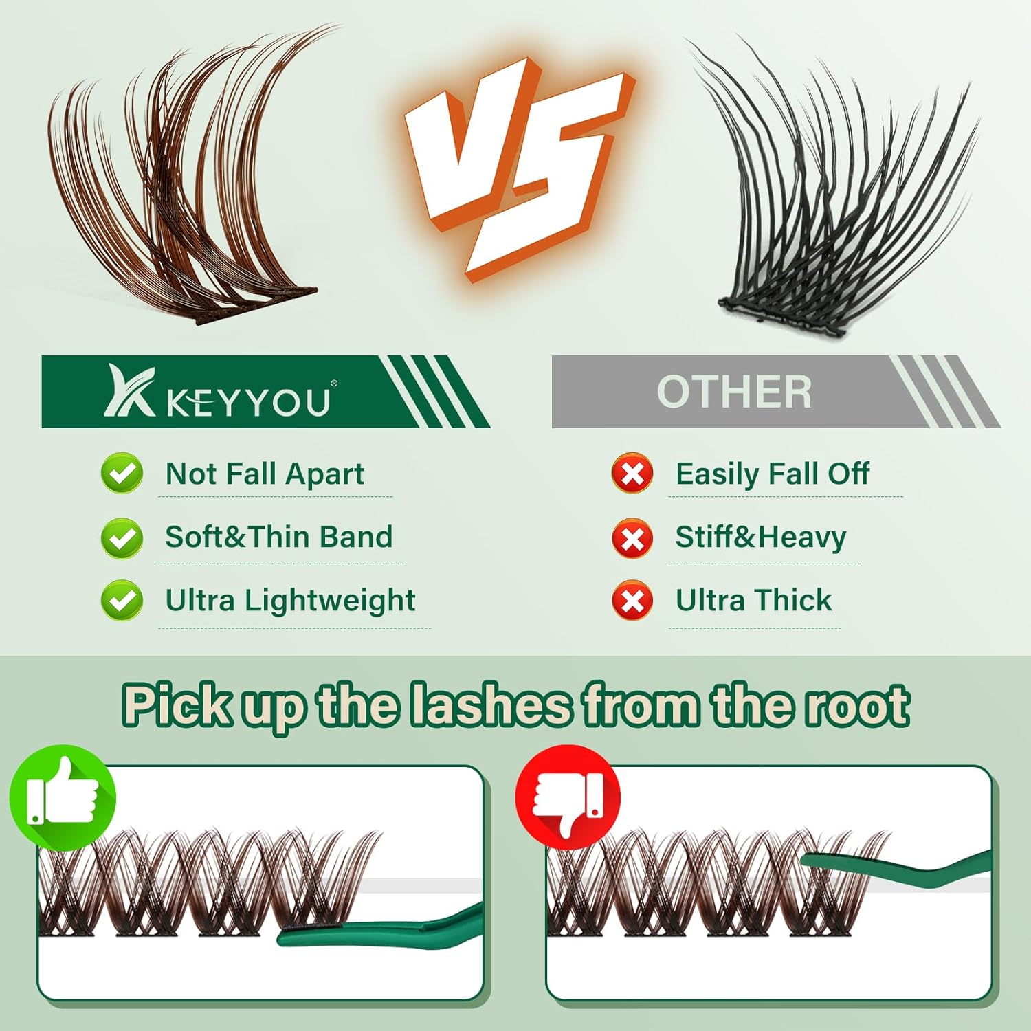 - Comfortable to Wear: Comfort is paramount when it comes to lash clusters wear. KEYYOU new brown eyelash clusters made with softer material, ensuring a lightweight feel throughout the day. Whether for all-day wear or special occasions, you can confidently wear them without any discomfort, allowing you to showcase your beauty naturally and comfortably.
