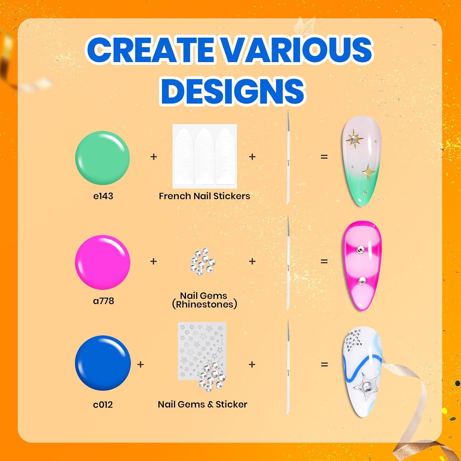 - One Set for All Nail Art: The set contains a variety of rich colors and can be customized in different styles to suit various occasions, meeting all your DIY manicure needs. The manicure set has all the colors, accessories, and ornaments you need. It is great for beginners and enthusiasts to try the art of nail polish and exercise your personality charm through different manicure styles!