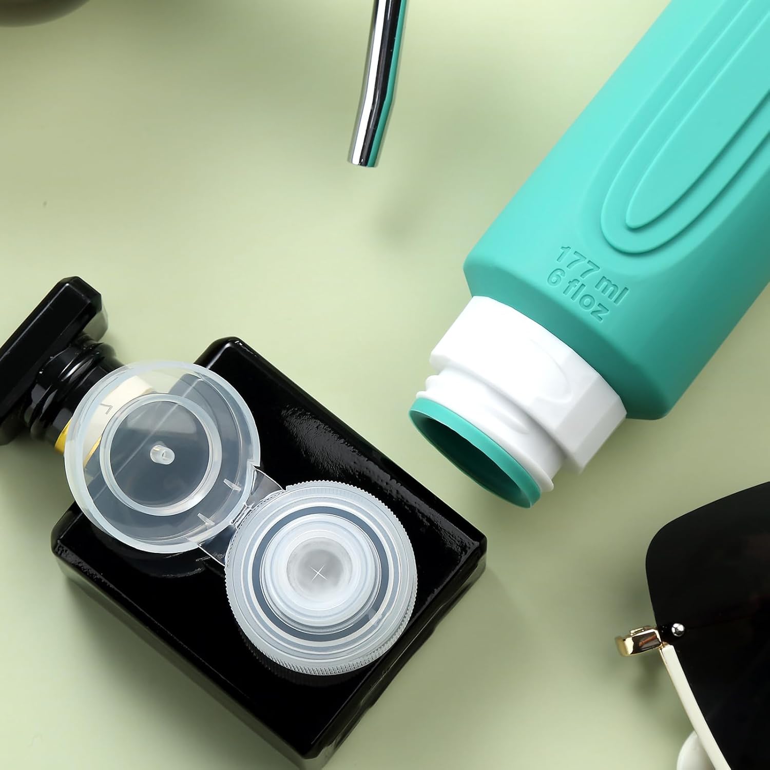 - Oversize 6oz travel bottle: Featuring a PVC toiletry bag, these travel-sized silicone bottles are perfect for storing and dispensing your favorite shampoos, lotions, and other liquids. Designed for convenience and durability, this travel set is a must-have for all your adventures.