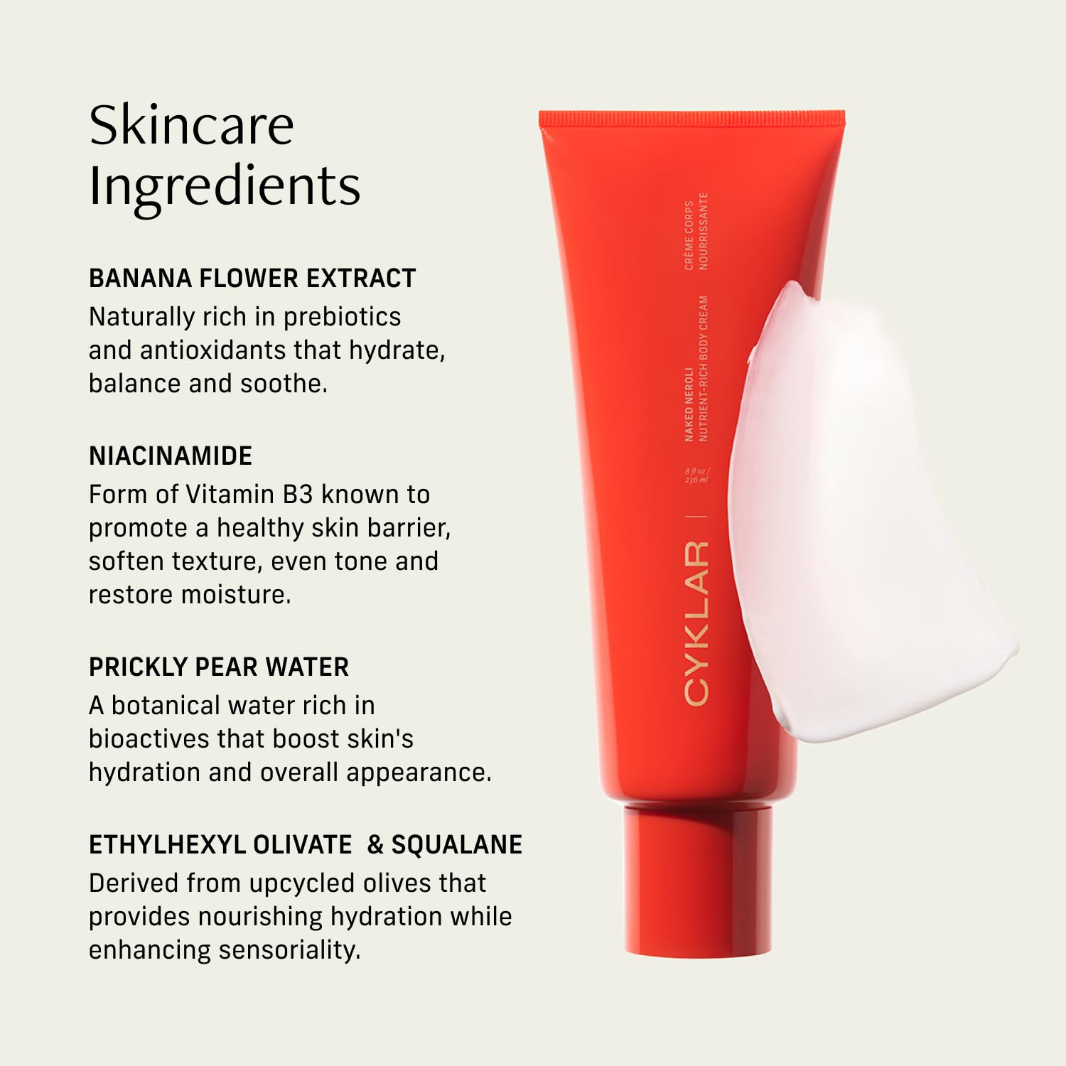 - RICH TEXTURE: Olive-derived Squalane and Ethylhexyl Olivate deliver all-day moisture day while leaving the skin barrier supported (without heaviness). This fast-absorbing body cream is perfect for daily use on all skin types, especially dry or sensitive—or anyone seeking lasting hydration.