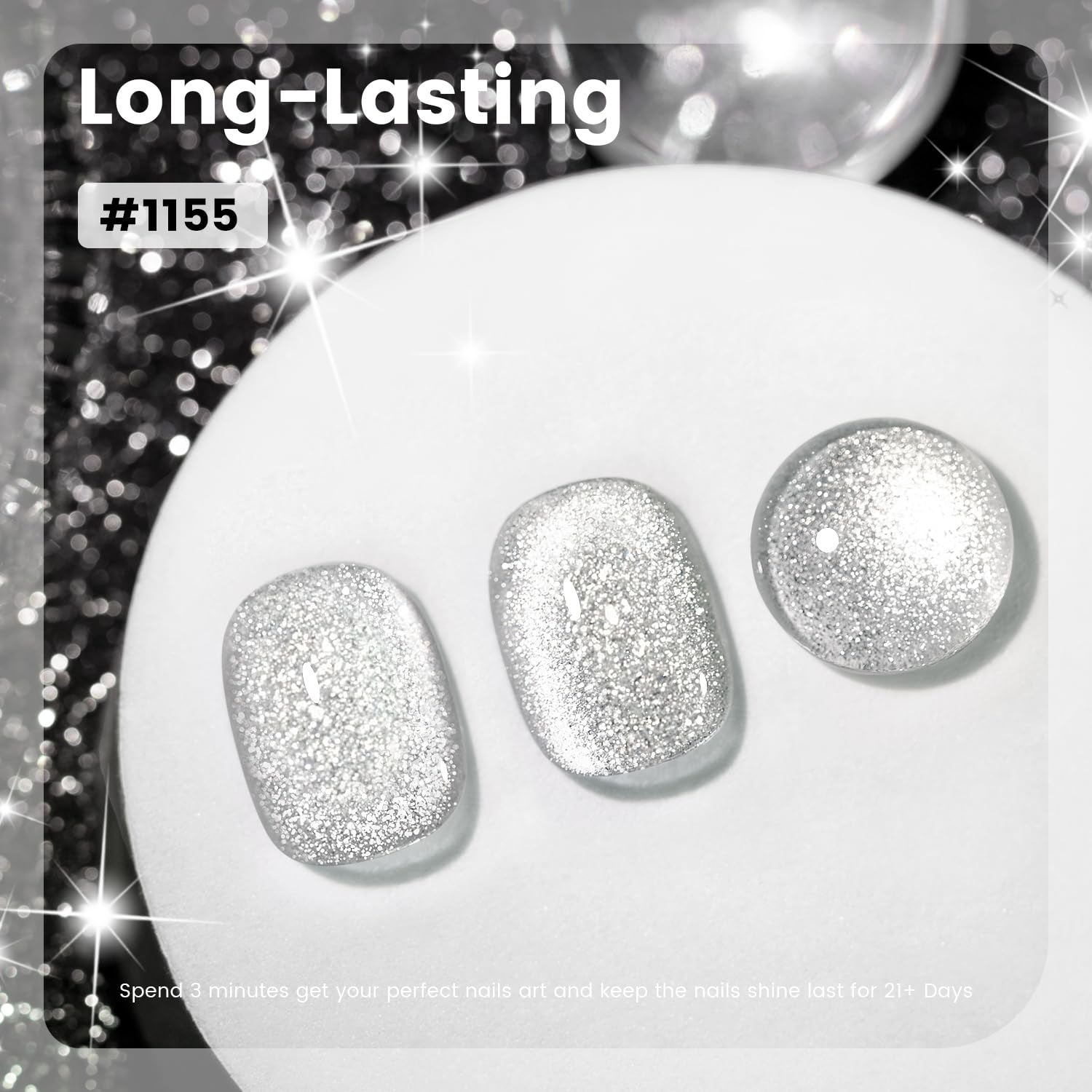 - SILVER WHITE CAT EYE EFFECT:Cat eye gel nail polish is a truly dreamy effect that reflects light in the same way a crushed diamond texture might. Made with fine magnetic shimmers and white silver pigments, our new shades create optical nail-lusions that move with every angle