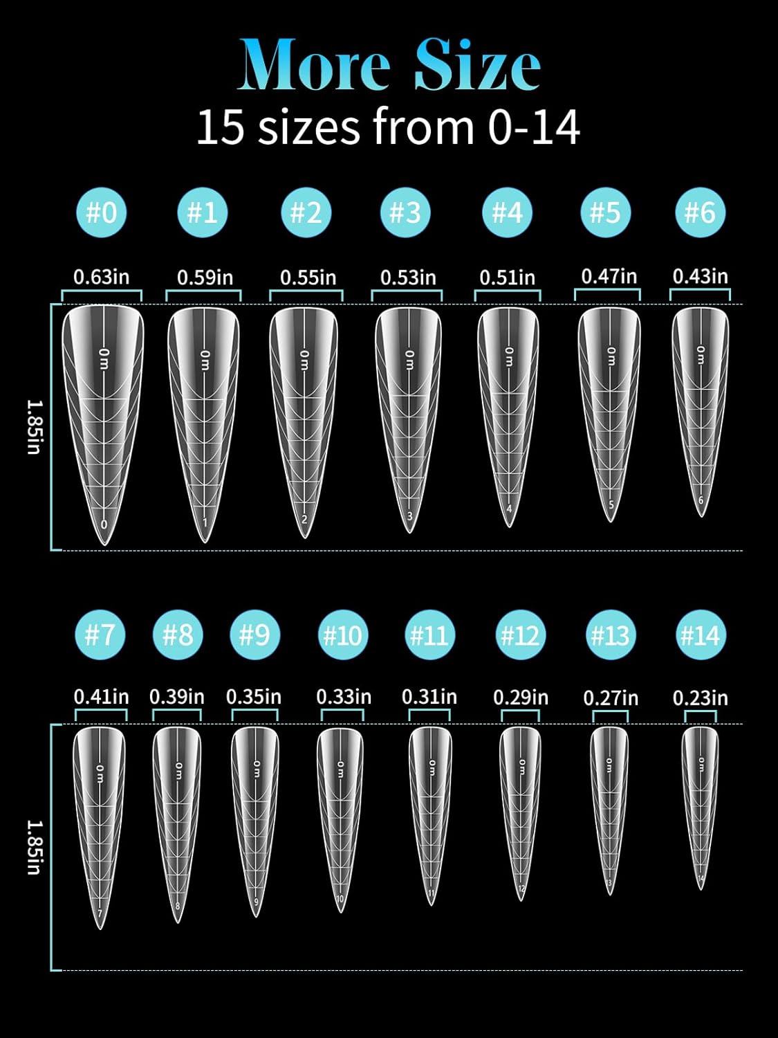 - 【Nail Form Mold with 15 Sizes】450pcs stiletto clear dual forms for poly nail gel offers 15 different nail sizes , and each size of long nail tips is separated by a small grid, a total of 15 grids, so they're easy and convenient to choose the suitable size to meet your nail's need.