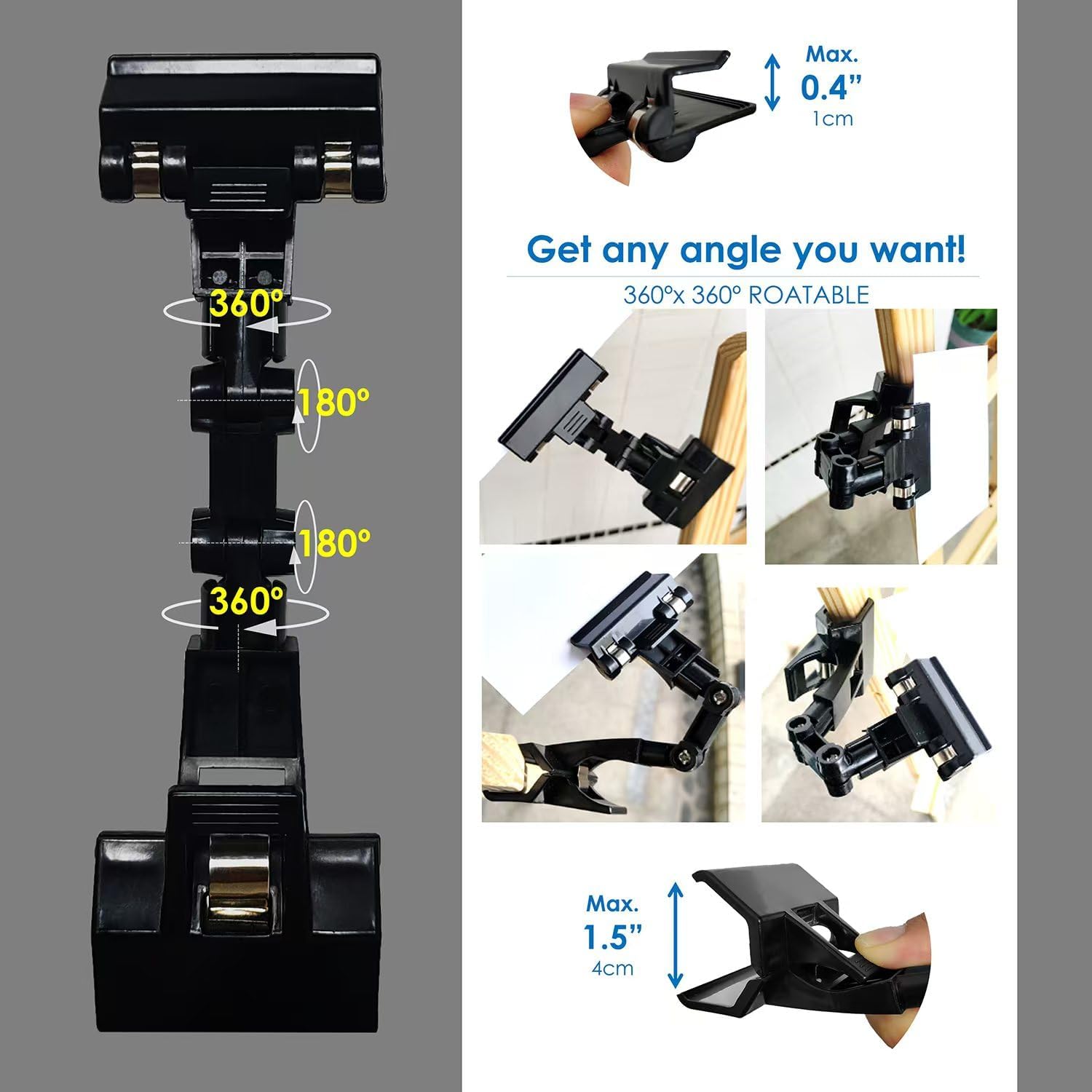 QMARK Easel Brush Clip, Easel Paintbrush Holder with a Rotatable Paper Copy Clip, Drum Stick Holder , Adjustable File Holder