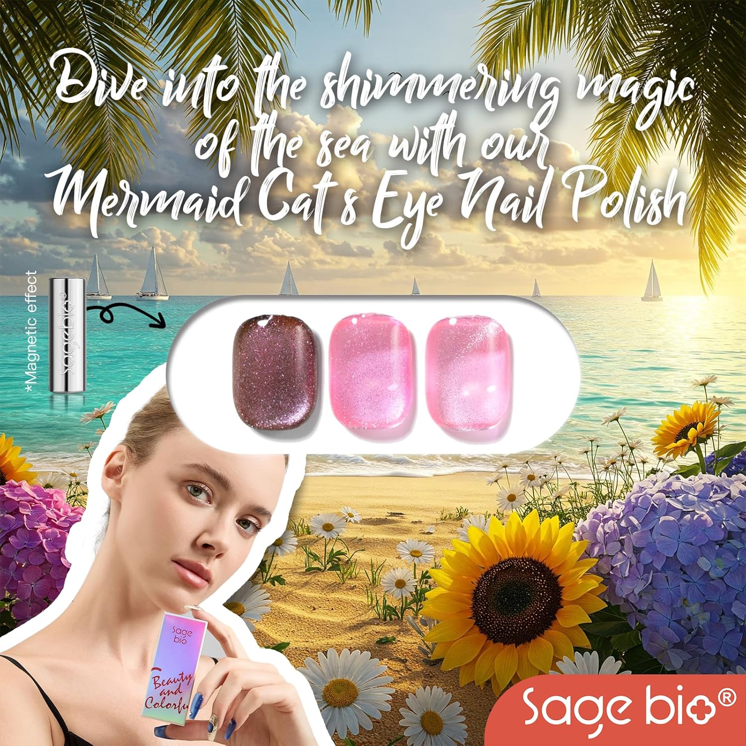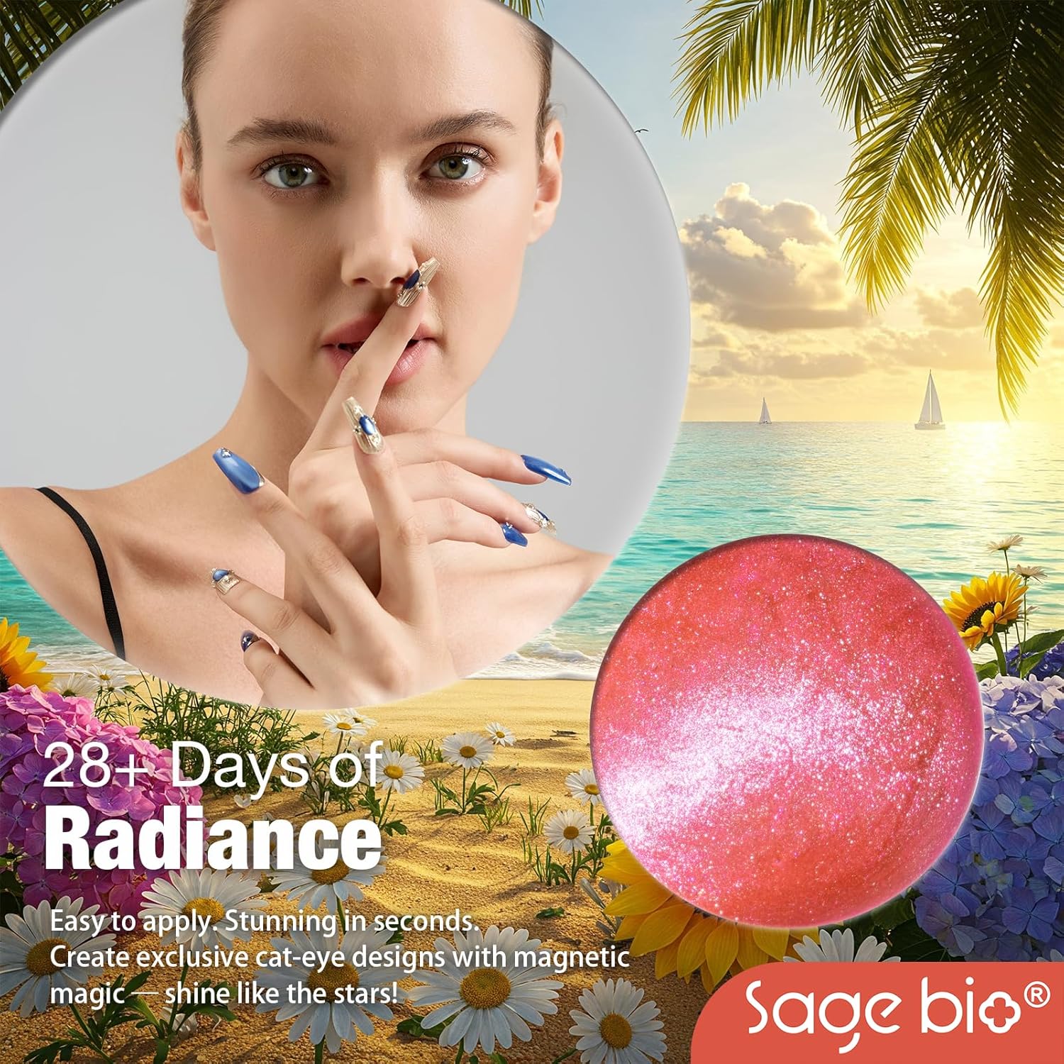 - Captivating 3D Cat Eye Effect: Create mesmerizing, multi-dimensional designs with SAGEBIO's cat eye gel polish. The included magnet stick helps you achieve a dazzling 3D magnetic effect that shifts beautifully with light.