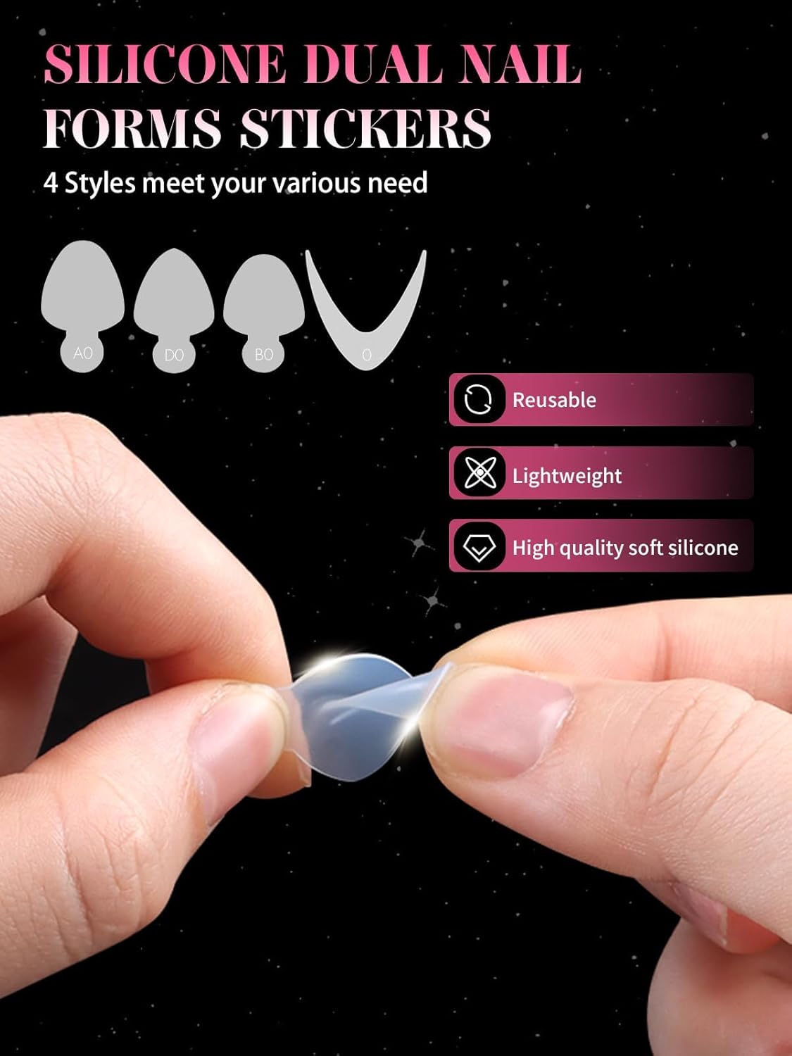 - 【4 Shapes with 12 Sizes】Both dual nail extension molds tips and French dual sticker silicone pads come in 8 style shapes and 12 sizes, each is engraved with numbers "0-11" for easy to recognize,which is convenient for you to design the nail length you want. And each size of long nail tips is separated by a small grid, a total of 12 grids, so they're easy and convenient to choose the suitable size to meet your nail's need