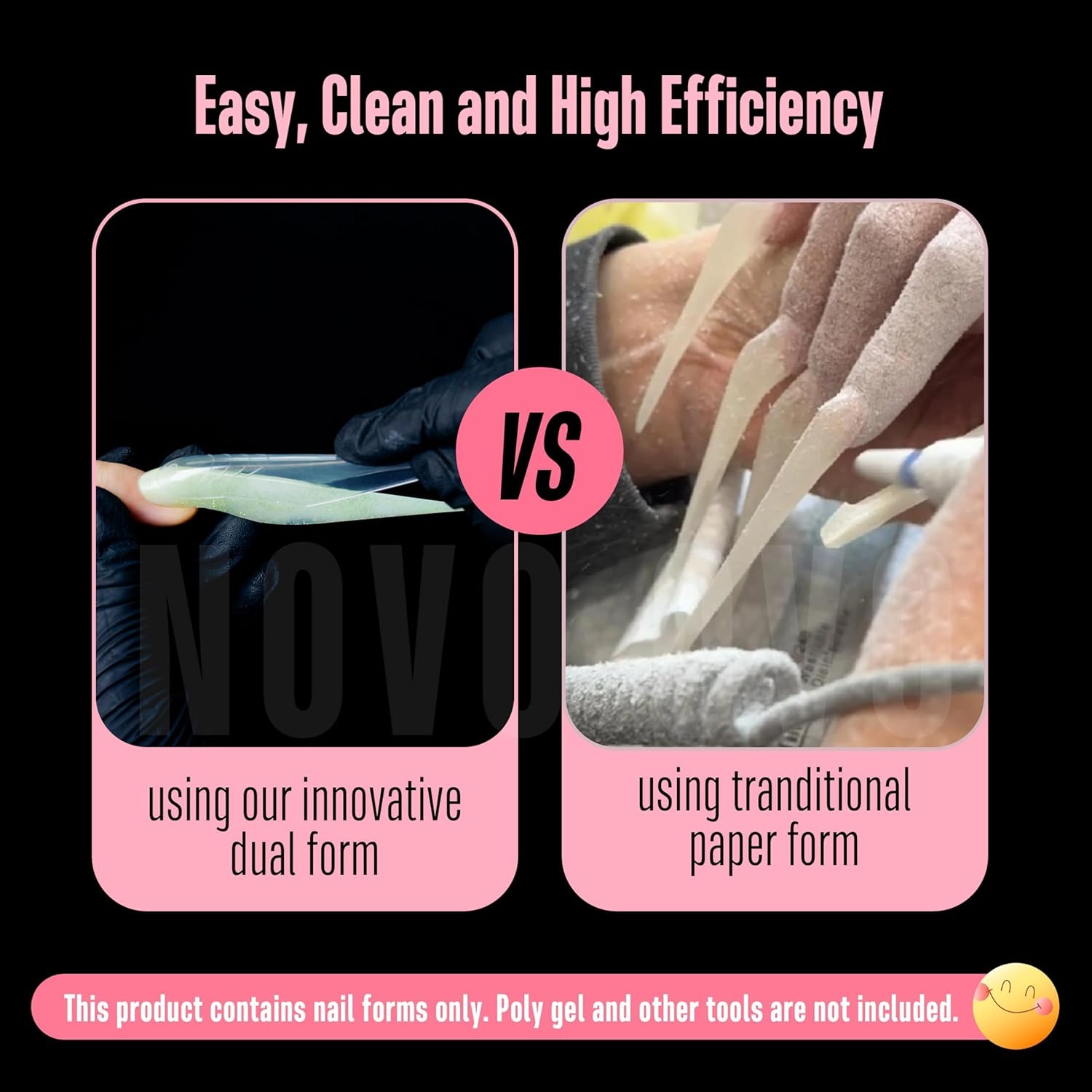 - THE WORLD'S FIRST XXXXL OR 5XL STILETTO BUTTERFLY DUAL FORM: At the demand of our clients—trendy nail artists and DIY enthusiasts、—NOVO OVO is excited to unveil this innovative Super Long Stiletto Nail tips with wings dual form. Effortlessly create stunning nails that are ideal for holiday parties and spooky festivities by filling the forms with poly gel, harder gel or builder gel positioning them on your nail, curing, and simply popping them off for a flawless 3D astonishing finish.