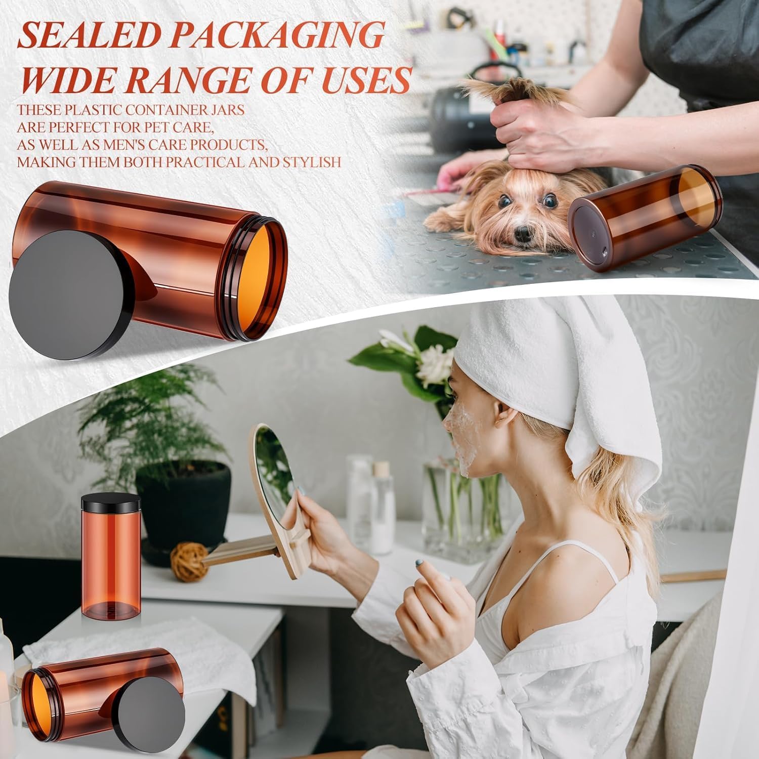 SATINIOR 24 Pieces Empty Clear Plastic Jars with Lids Round Storage Containers Wide Mouth for Beauty Product Cosmetic Cream Lotion Liquid Butter Craft and Food(Amber Lid,32 oz)
