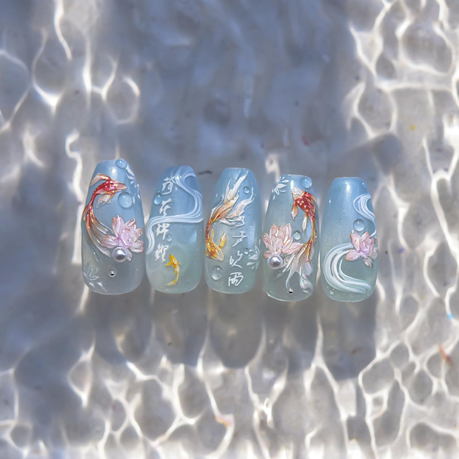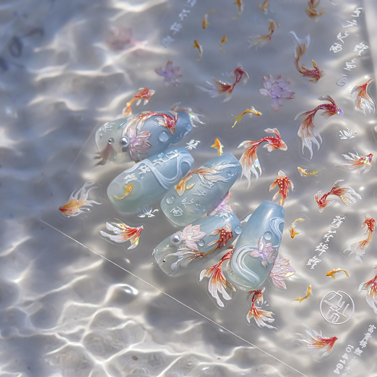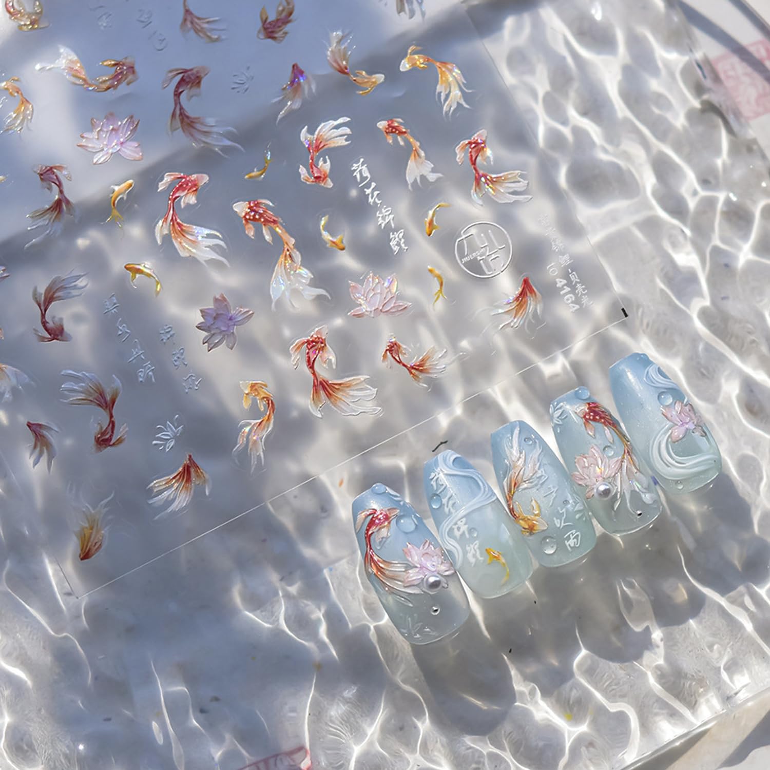 - Package: You will get 1 sheet 5d koi fish nail stickers for acrylic nails supply, many cute koi fish pattern for you to choose, cute lotus nail designs, and satisfy your rich imagination of nail DIY.