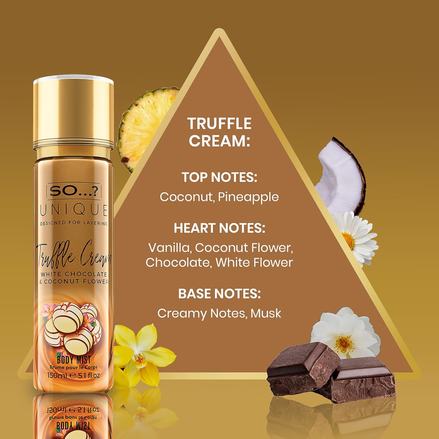 So...? Unique Body Mist - Truffle Cream for Women - 5.1 oz Body Mist - Pack of 2