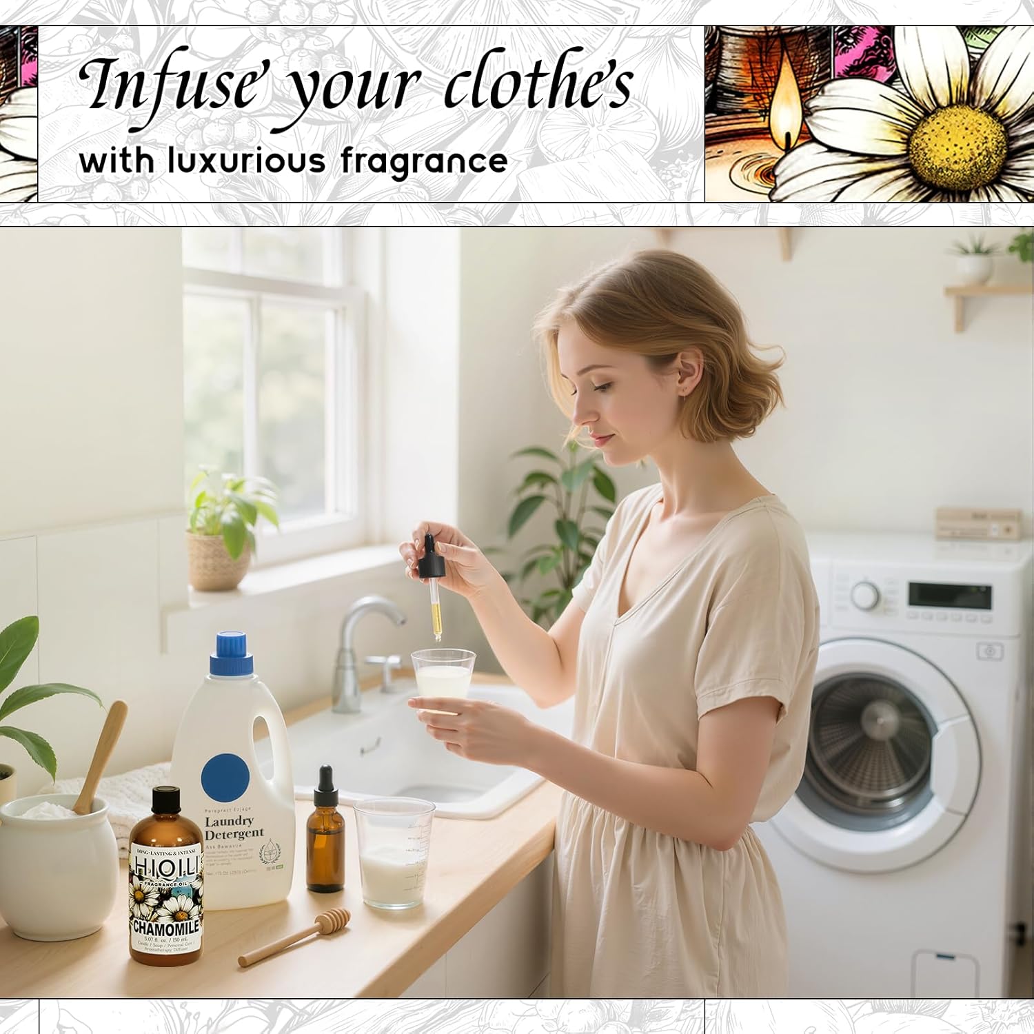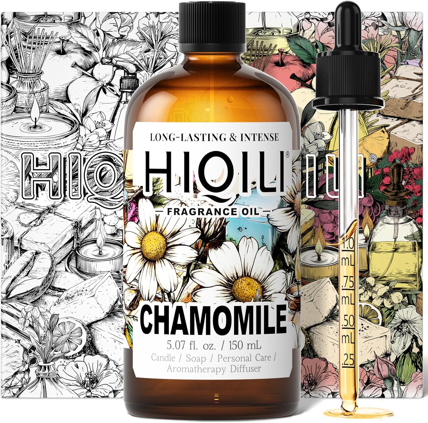 HIQILI Chamomile Fragrance Oil for Candle, Soap Making, Use in Essential Oil Diffusers, Add to Body Lotion, Laundry Dryer Balls - 5.07 Fl Oz