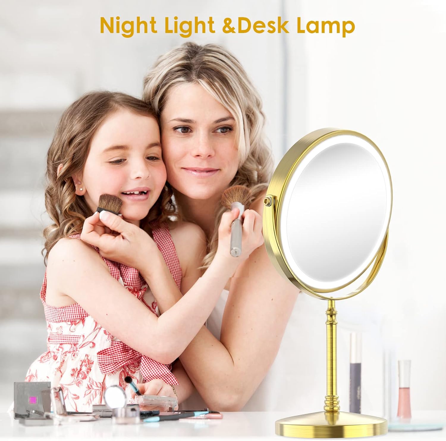 - Detail Design and Widely Use: This lighted makeup mirror is a large 8-inch size, providing a large and high-definition wide-angle field of view. The compact design takes up very little space, and the non-slip padding at the bottom enables the mirror to stand stably on the countertop. It is not only a professional vanity mirror that can be used in home, bathroom, hotel, spa, beauty salon, etc., but also a desk lamp, night light, atmosphere light, etc., it is the perfect present.