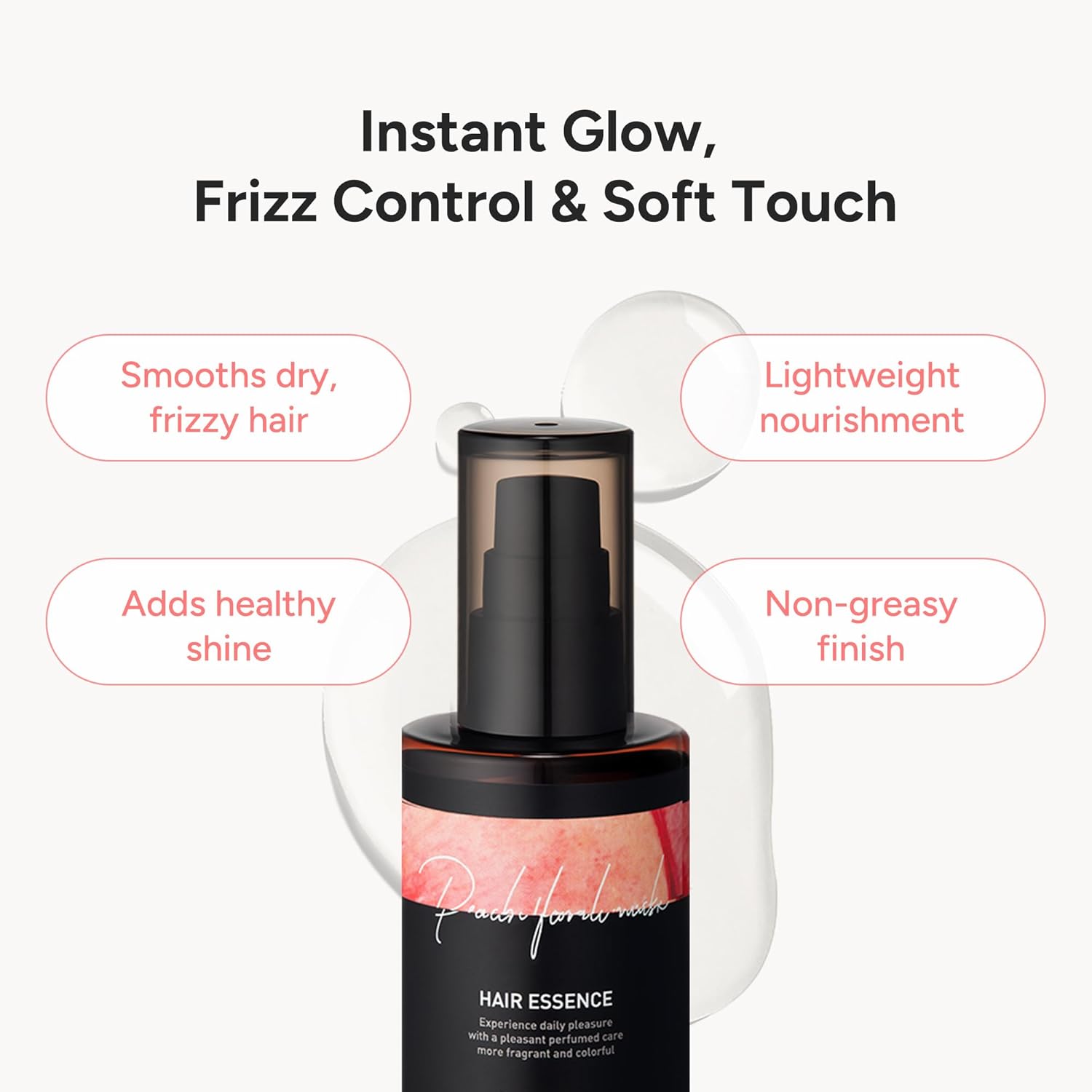 Perfumed Hair Oil & Serum – Korean Hair Essence for Shine, Damage Repair & Frizz Control – Argan Oils & Amino Acids – Sulfate & Paraben-Free – Peach Floral Musk, 100ml / 3.38 fl oz