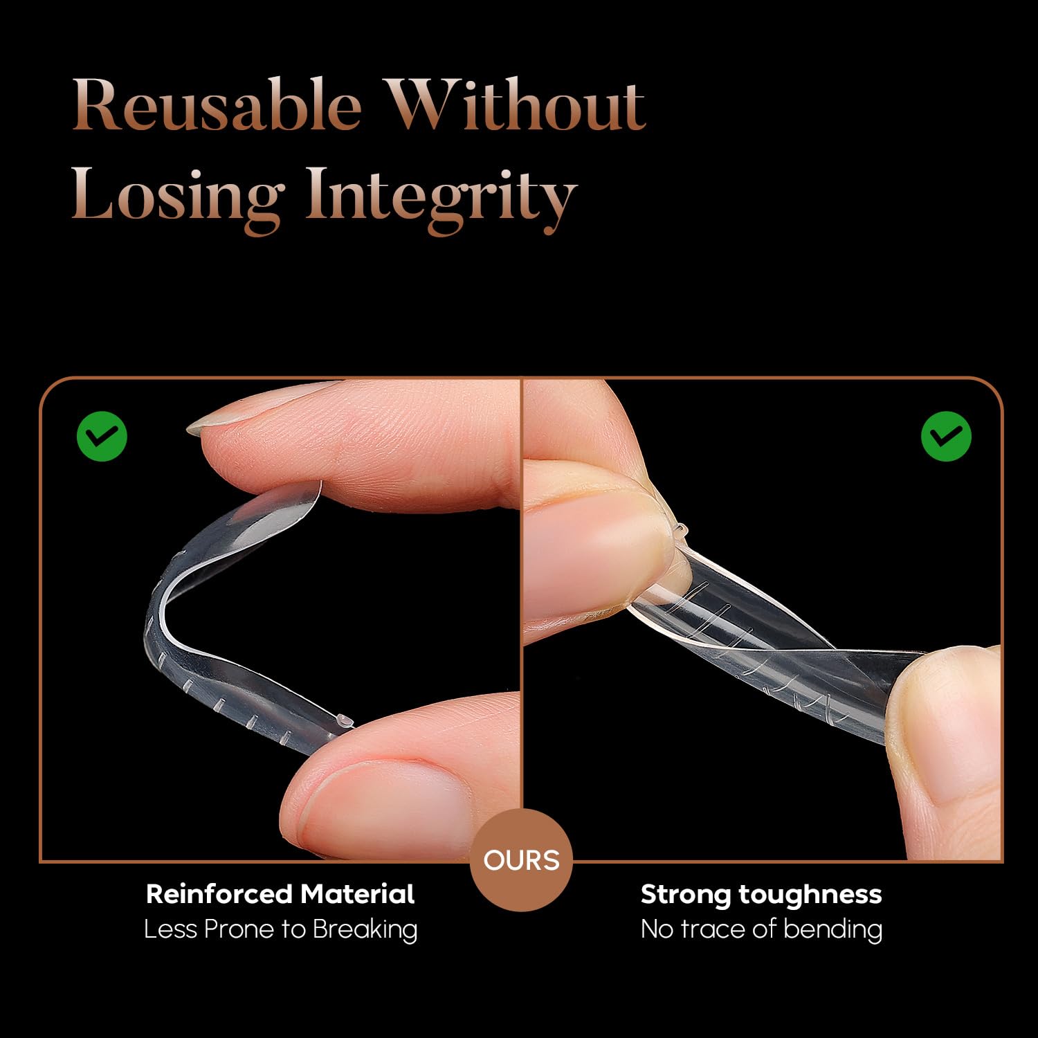 - Salon-Quality Material: Crafted from premium ABS material, our gel dual forms are thin, natural-looking, yet durable and bendable without creasing. The flexible silicone tips offer a gentle texture that is easy to remove without damaging your nail extensions.