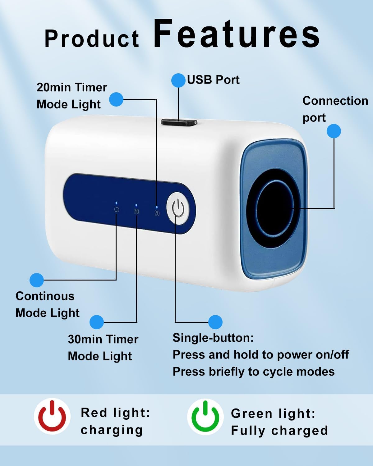 - 【Package Included】Palm-sized device (4.53*2.56*1.99in) with USB fast charging; 4*connector; 1*tube(0.19in); 1*cleaning bag and 1*storage bag. The instruction manual is also included in the packaging box.