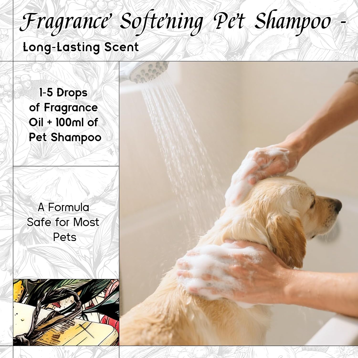 - Pet-Safe & Gentle β Formulated with pet-friendly dilution guidelines for creating pet coat and deodorizing spray. Safe for dogs and cats when used as directed