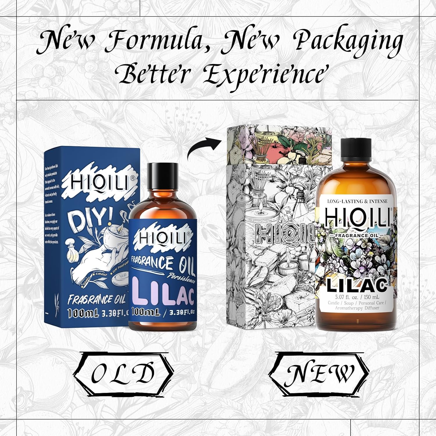 HIQILI Lilac Fragrance Oil for DIY Perfume, Candle & Soap Making, Soft Floral Scents for Essential Oils Diffuser - 5.07 Fl Oz