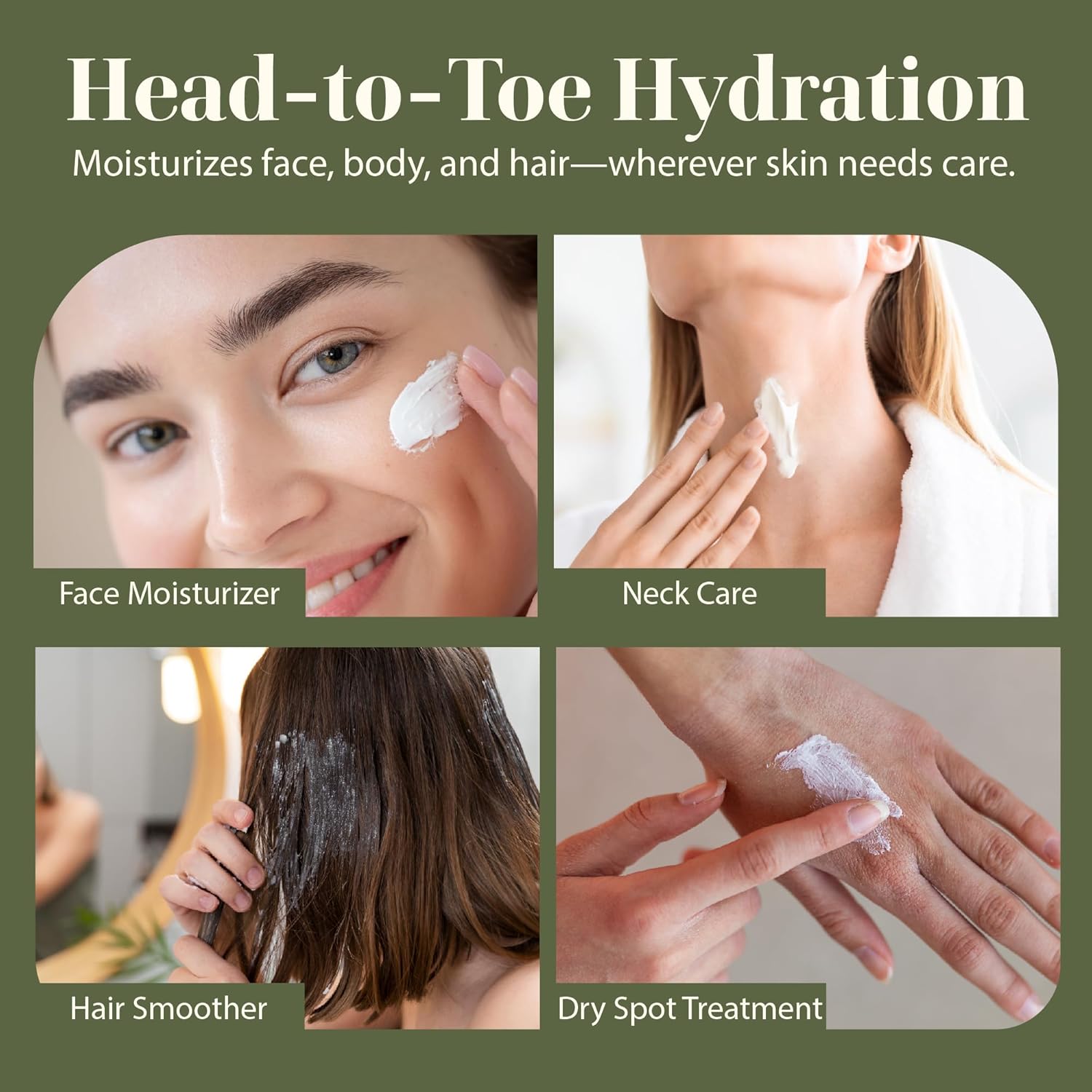- MULTIUSE MOISTURIZER FOR SKIN & HAIR: Use as a daily moisturizer, body balm, or hair cream. This butter cream doubles as a face and body cream for women, locking in hydration and softness without clogging pores or weighing hair down.